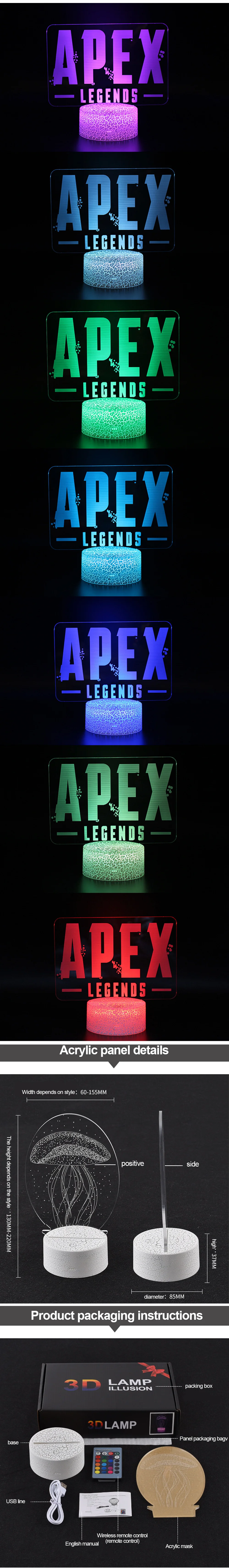 3d-ночник Apex Legends с логотипом, светодиодный светильник меняющий цвет светильник игровой комнаты, идеи декора, классное событие, приз геймеров, подарок на день рождения