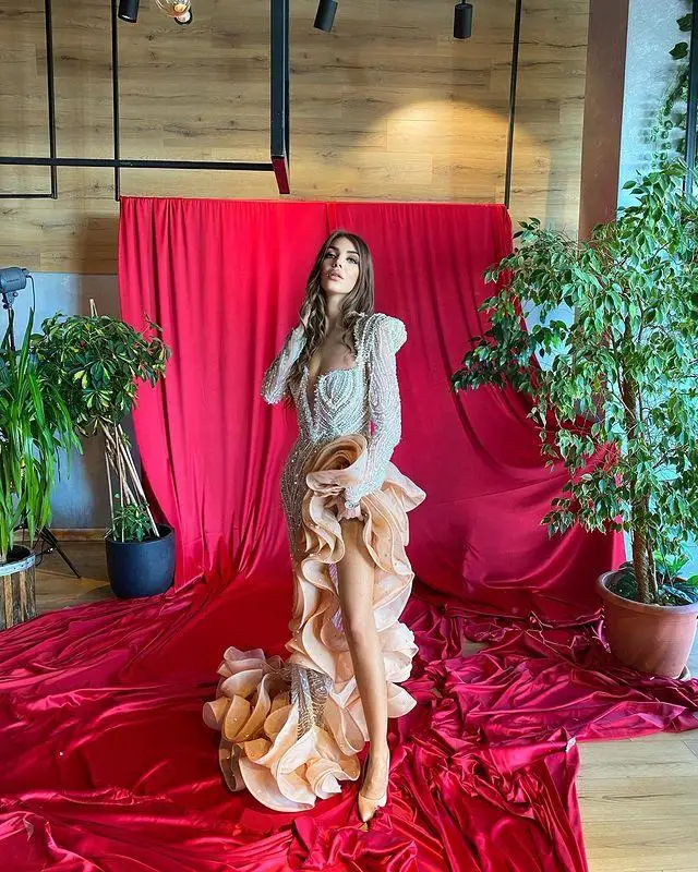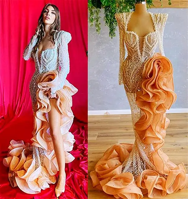 Элегантные вечерние платья Yousef Aljasmi с блестками и длинным рук...