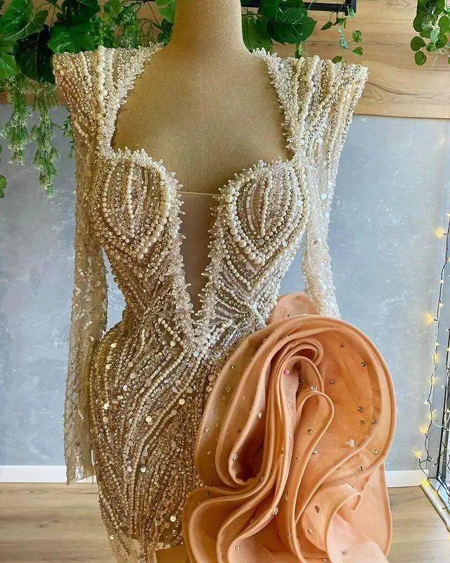 Роскошные блестками коктейльные платья одежда с длинным рукавом раз...
