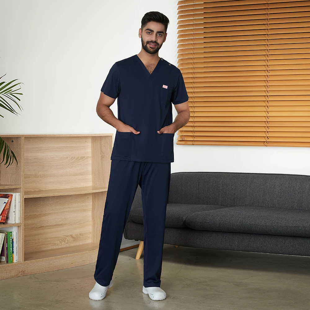 Медицинский короткий рукав с v-образным вырезом Форма Кнопки Pet Shop уход скраб форма Для мужчин и Для женщин Для мужчин Больница Доктора стоматолог на каждый день, комплект одежды