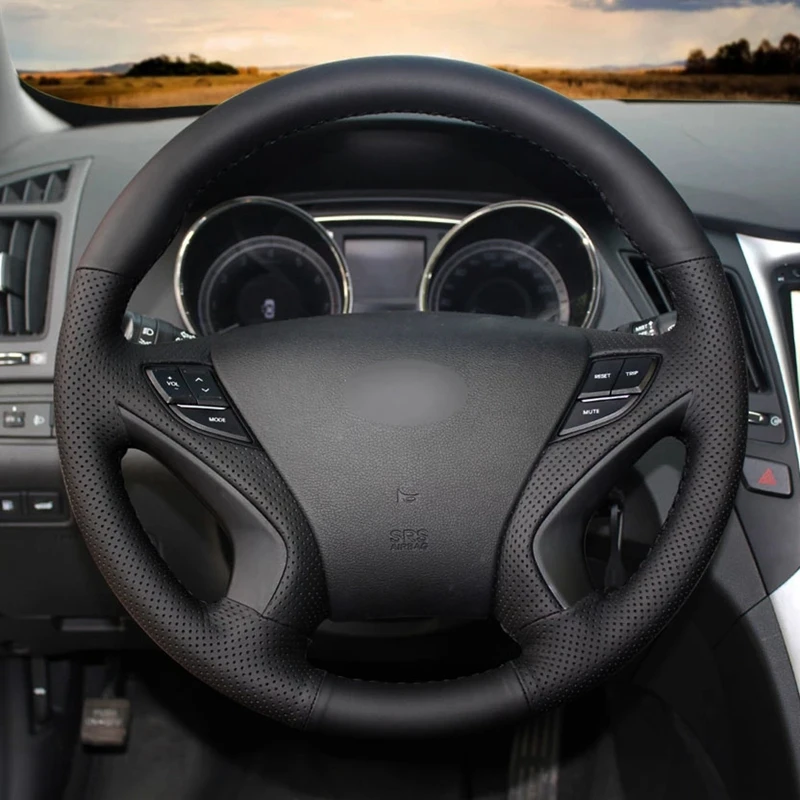 Чехол рулевого колеса автомобиля черная натуральная кожа для Hyunda...