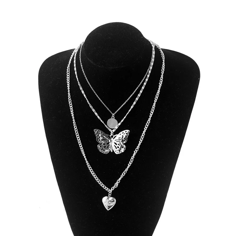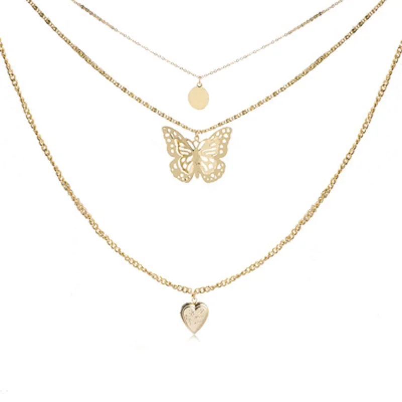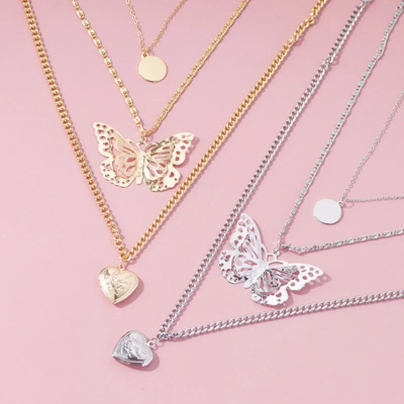 Найти меня модная пуговица из сплава с двумя цветной многослойный ожерелье полые бабочка, стильный элегантный кулон "Сердечко" для женщин, ювелирные изделия, аксессуары