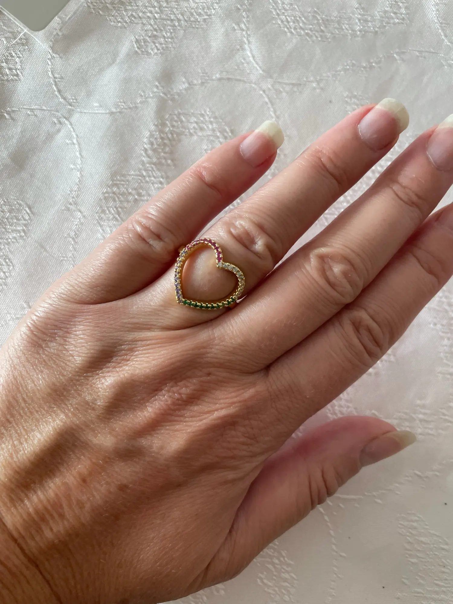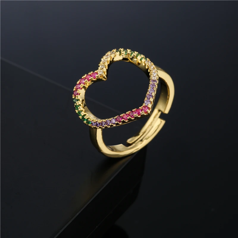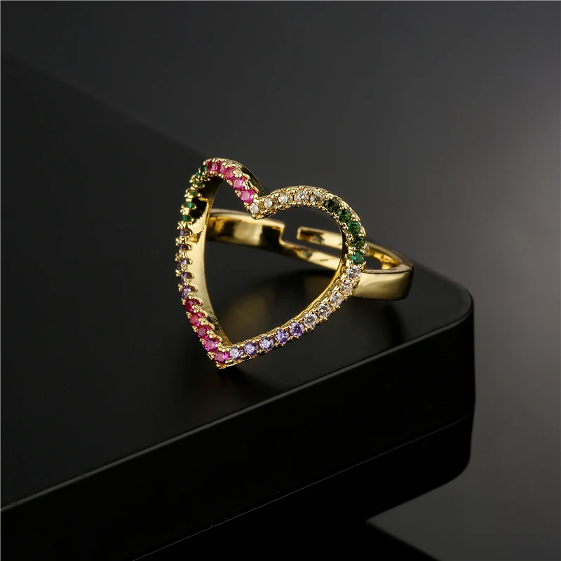 Радуга Цвет AAA + CZ камень проложить параметр полый Шарм в виде сердца кольцо для женщин и девушек, золото Цвет Свадебные ювелирные изделия, обручальное кольцо, подарок
