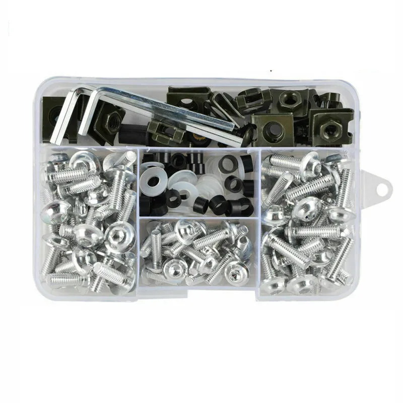 Разработанный путем рассмотрения потребностей механиков и гонщиков в дилерском центре и на racetrack, этот комплект имеет 195 штук высшего заводского стиля метрического оборудования, включая болты с головкой гнезда, болты с головкой кнопки, фланцевые болты, болты-обтекатели с нейлоновыми шайбами, крепежами для ветрового стекла и многое другое.