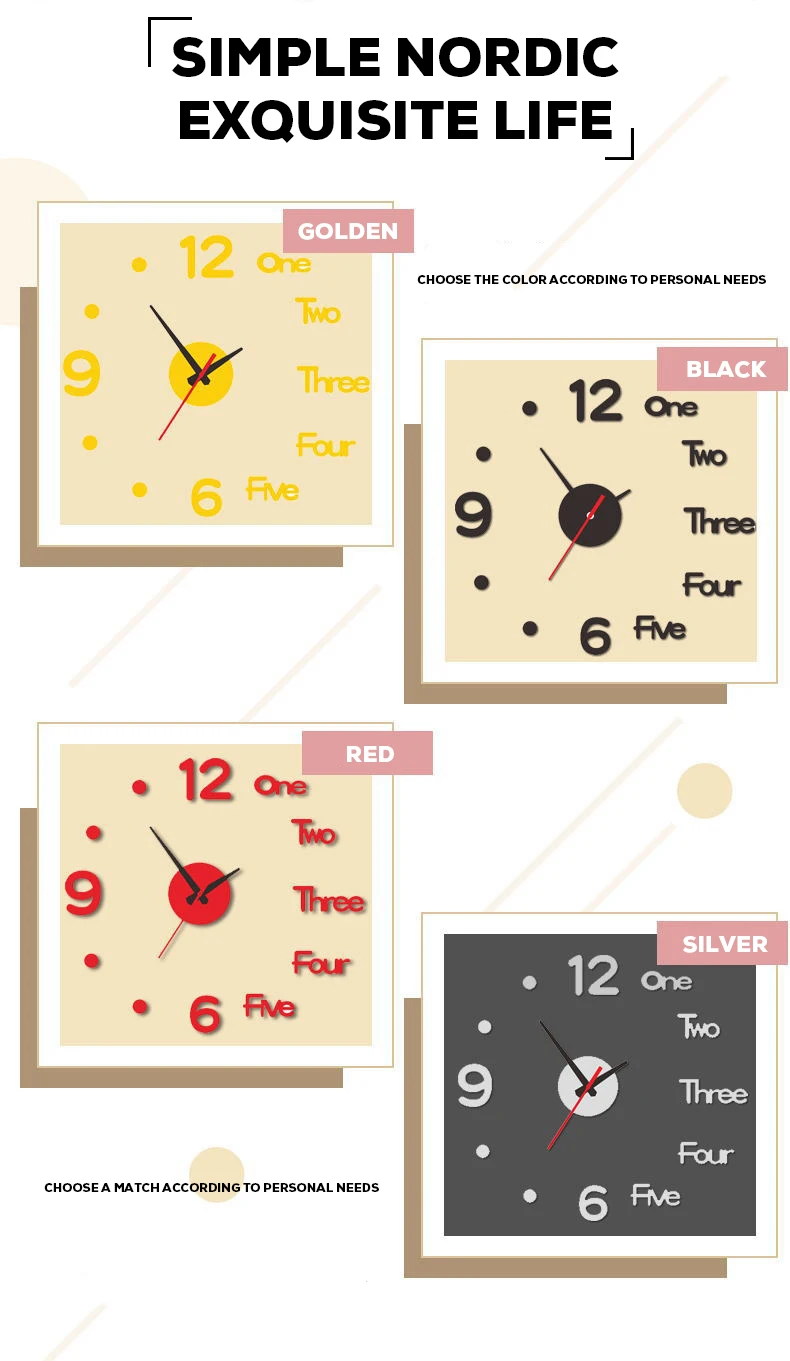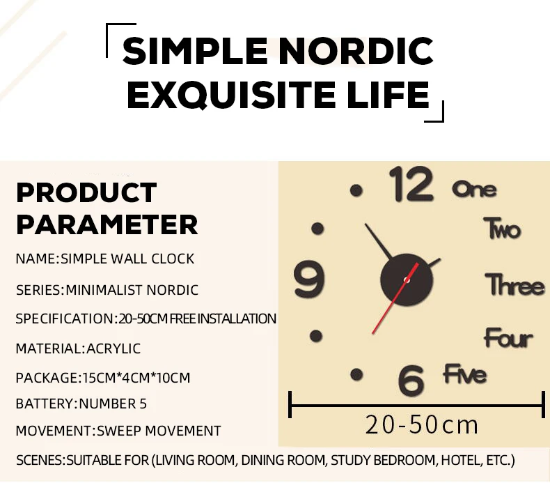 Настенные часы с 3D цифровым дисплеемМатериал: акрил + бесшумный механизмЦвет: черный, серебристый, желтый, красныйТип часов: сделай самРазмер: 35-50 смМощность Батарея: спринтом Цифры 5, аккумуляторная углеродная батареяХорошее украшение для вашего дома, также выбор подарка для ваших детей, подходит для гостиной, спальни, детской комнаты.Посылка: 1 комплект х Настенные часы (без аккумулятора)
