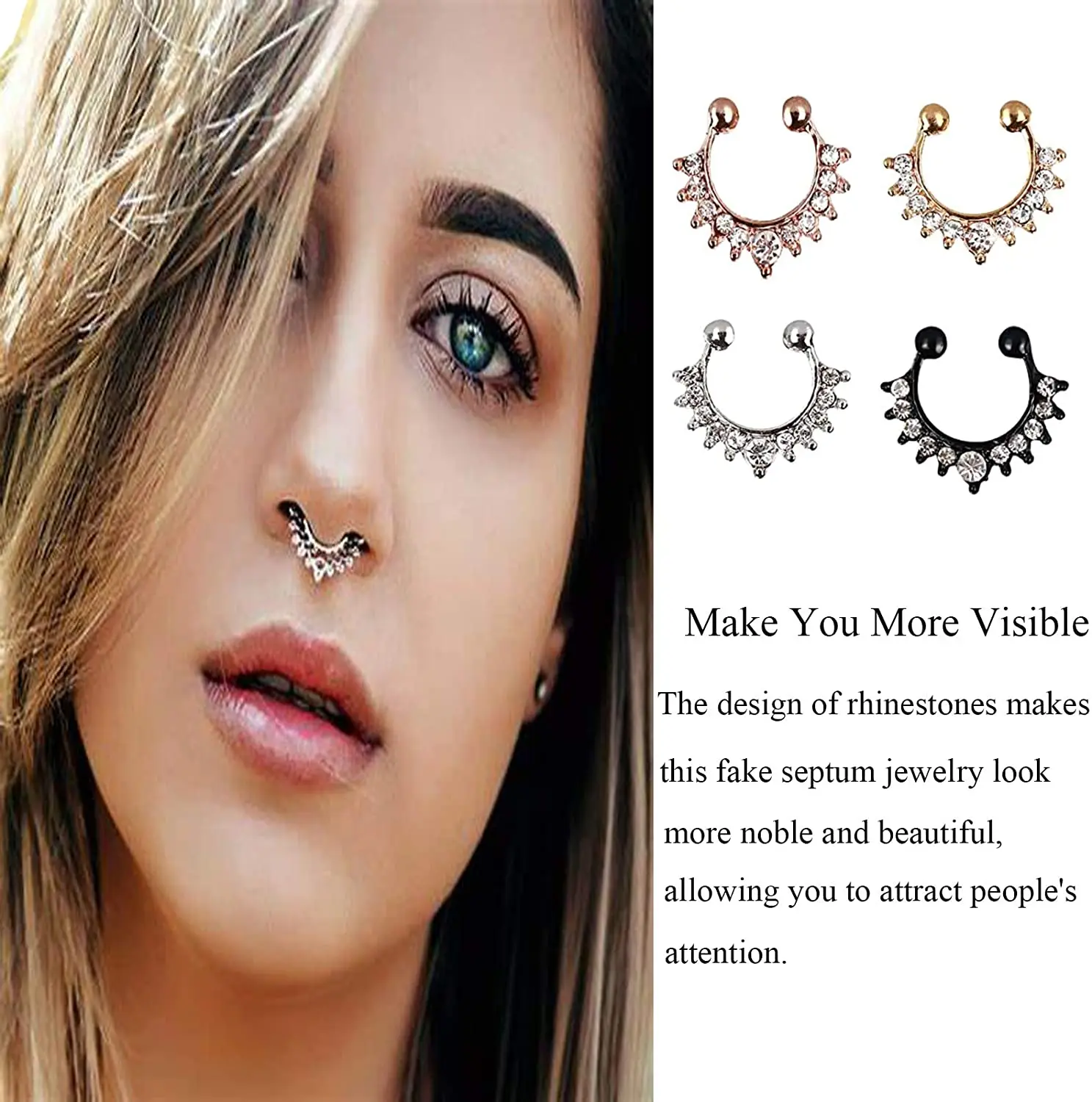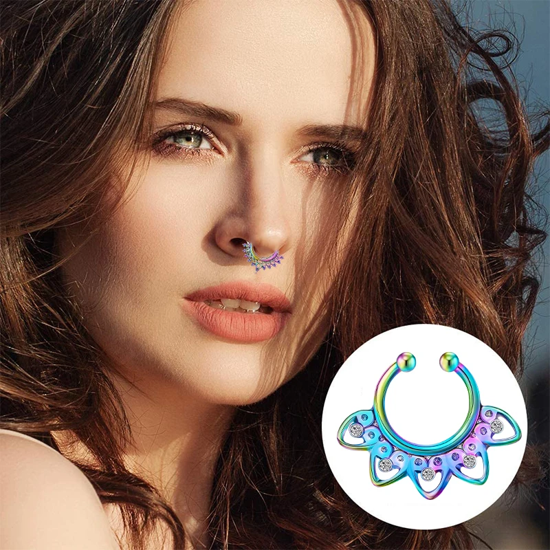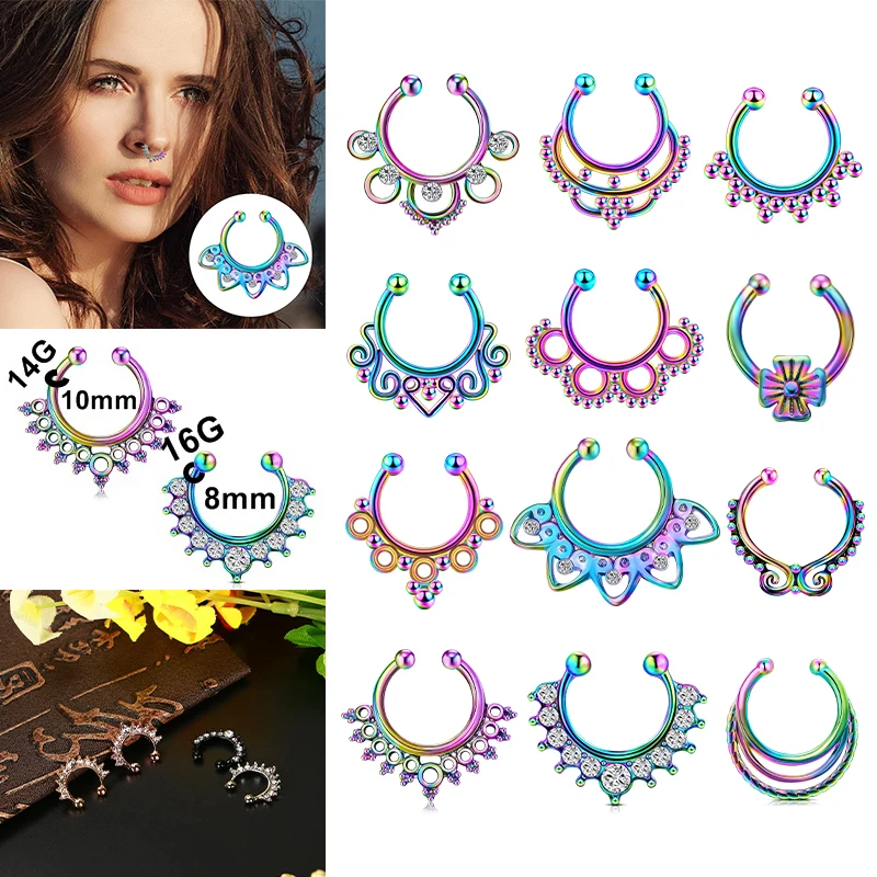 Искусственное кольцо для носа, искусственная перегородка, зажим в носу, без перфорации, перегородка для носа 14G1, 6 г, искусственная перегородка CZ, ювелирные изделия для тела