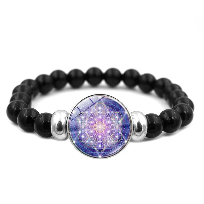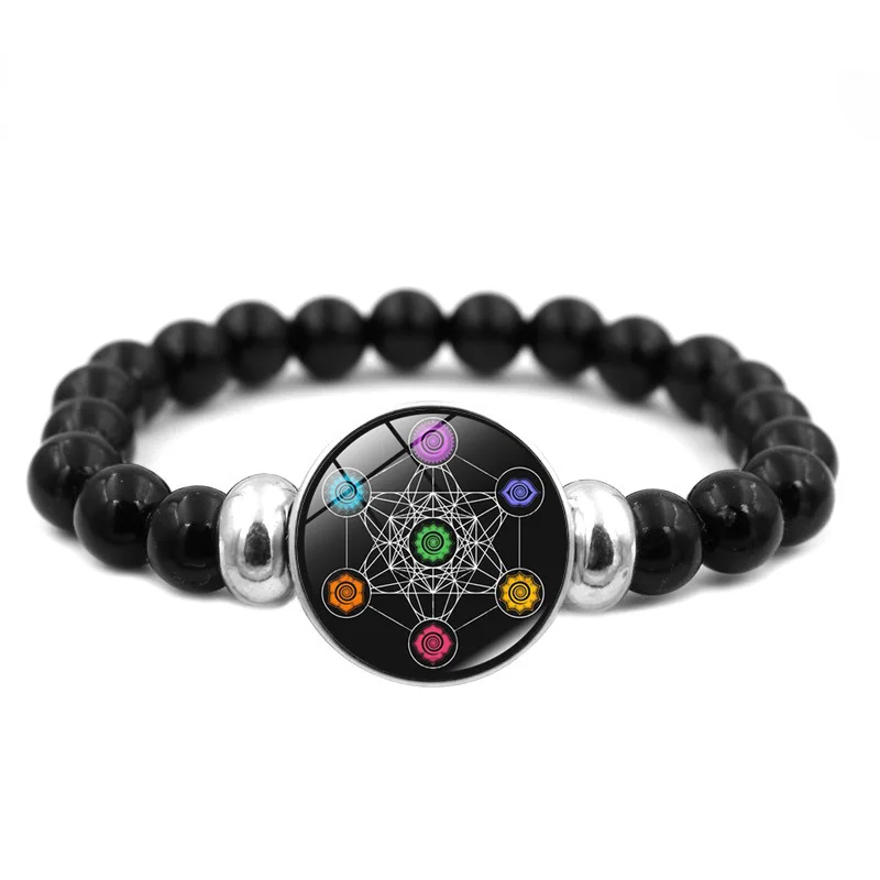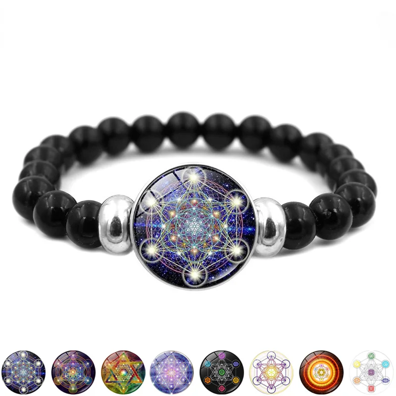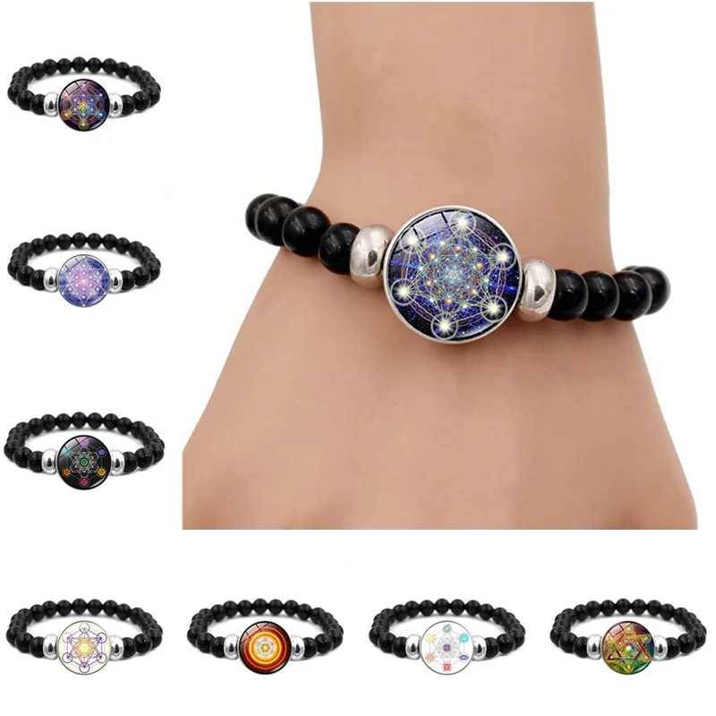 Таинственный куб Metatron, браслет с кнопками, геометрический священный цветок жизни, эластичные черные бусины, браслеты из ниток для мужчин и женщин