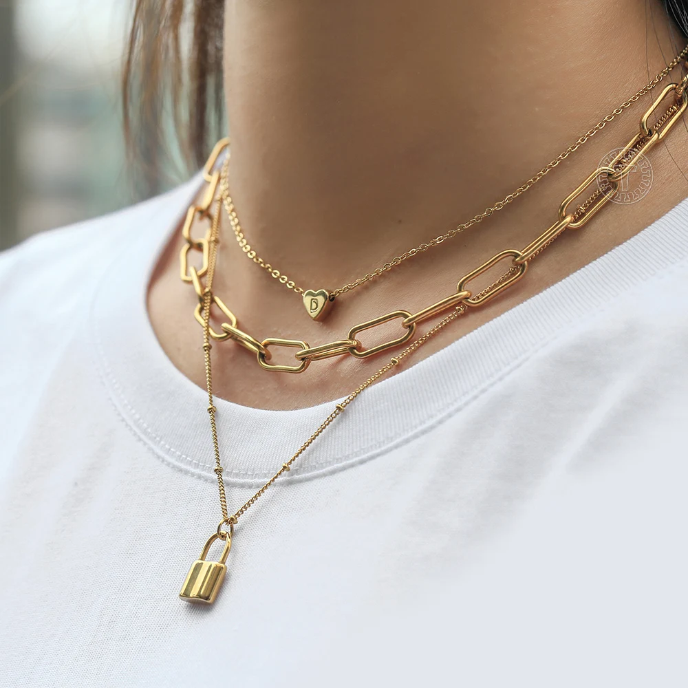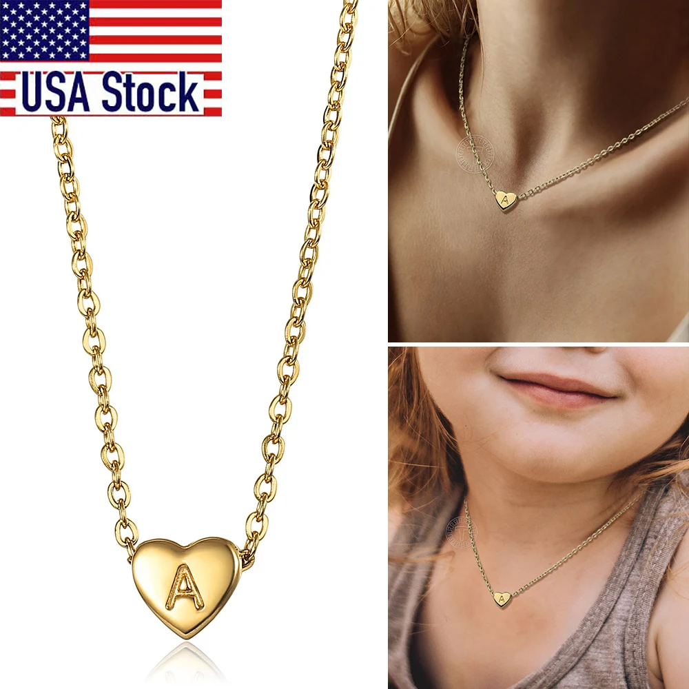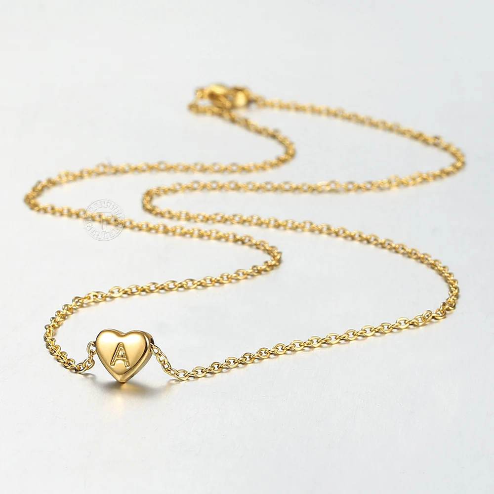 A-Z кулон в виде сердца с надписью, ожерелье для женщин, колье из нержавеющей стали золотого цвета