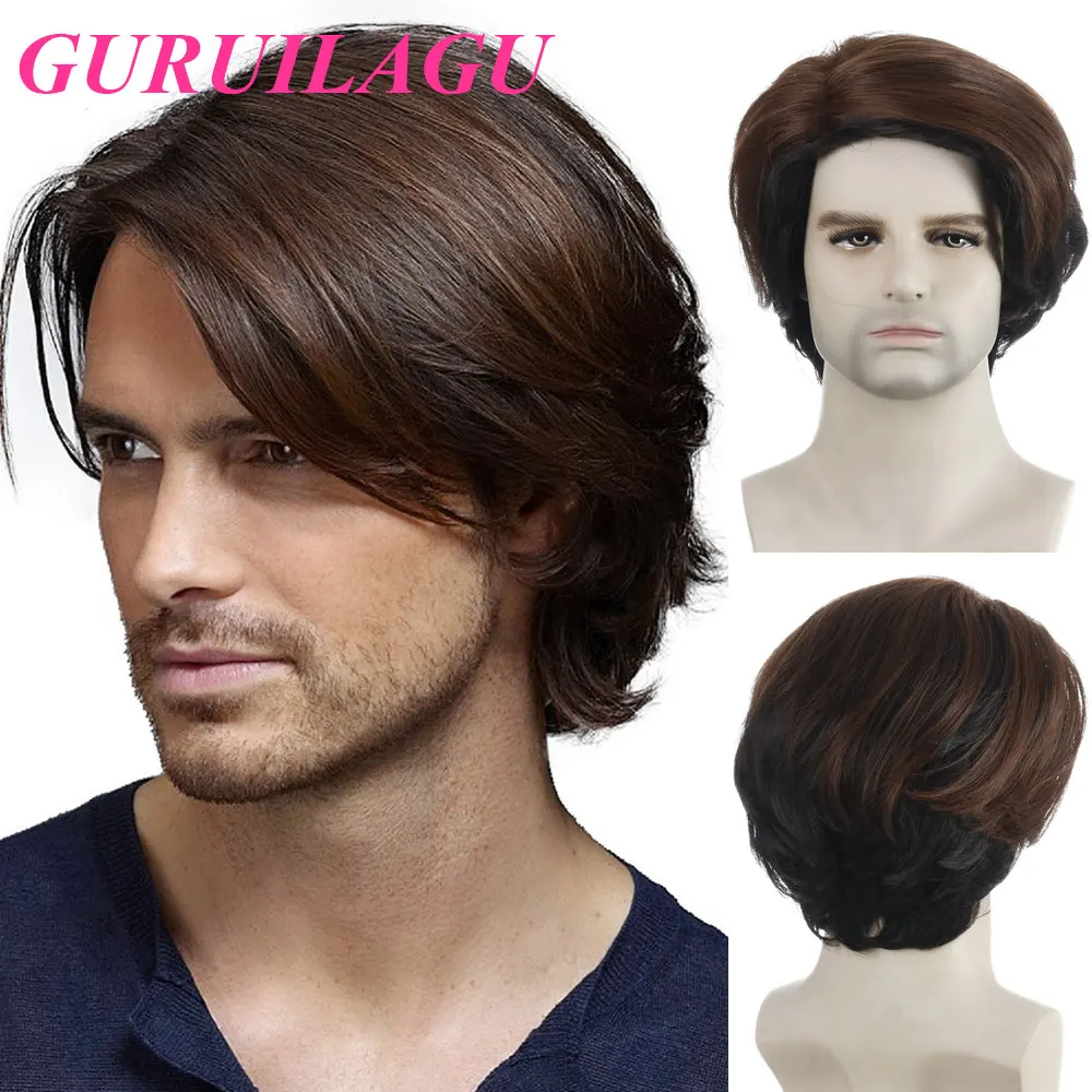 GURUILAGU короткий мужской парик гладкие натуральные парики для муж...