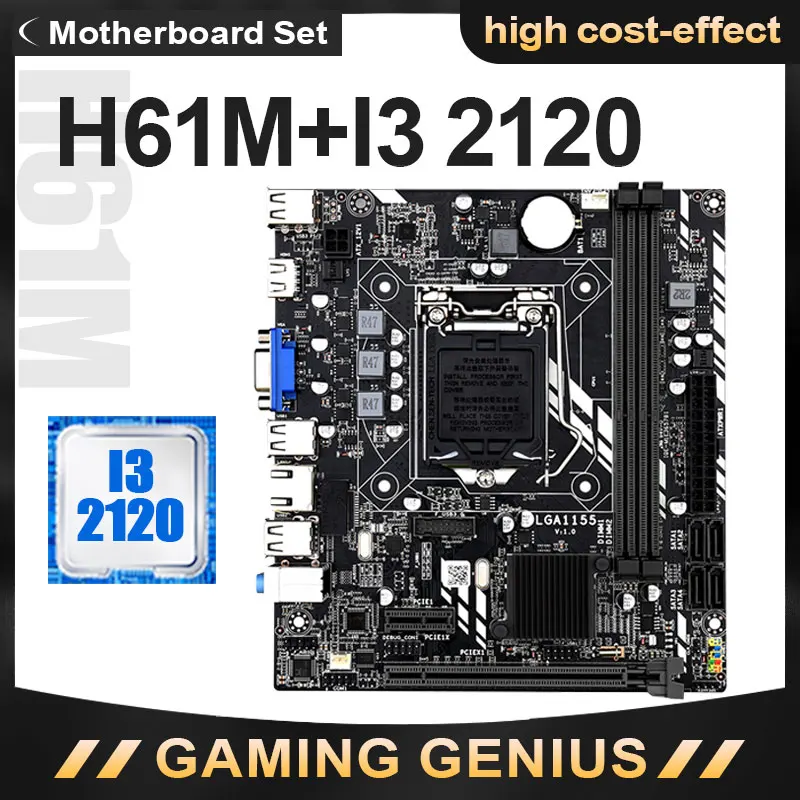 JINGSHA H61M LGA 1155 набор материнских плат с I3-2120 Процессор H61 Intel Чипсет материнская плата SATA2.0 DDR3 поддержка LGA1155 PCI E 8X