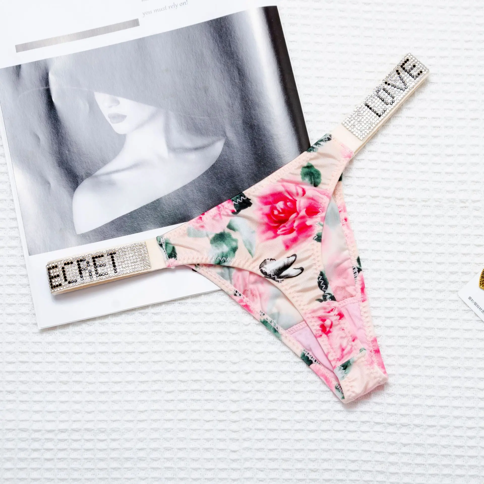 Удобное бесшовное нижнее белье для женщин, сексуальные хлопковые трусики с низкой талией, нижнее белье, роскошные стразы, фирменный дизайн, стринги с буквенным принтом