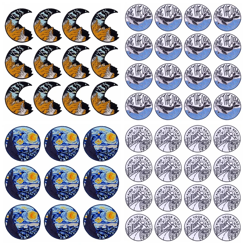 Prajna 10 шт., Van Gogh Iron On Patches Adventure, вышитые нашивки для одежды, оптовая продажа, горный значок, сумка DIY, аппликация
