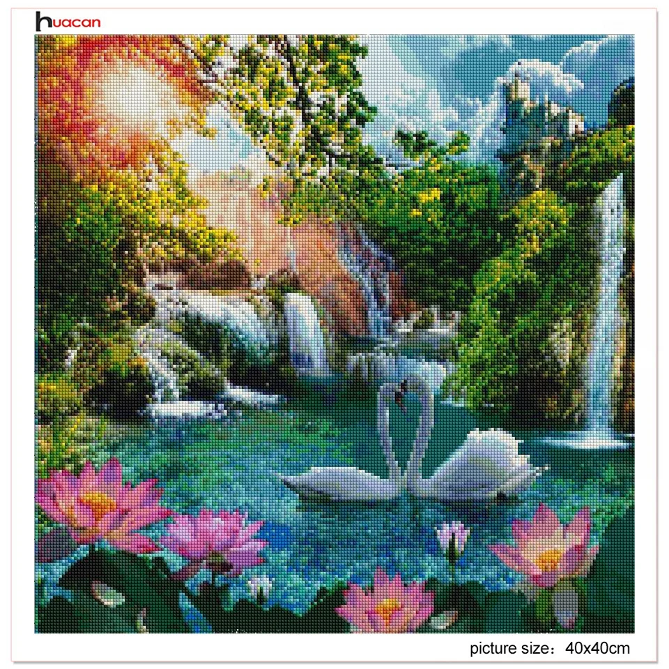 Huacan Diy алмазная живопись лебедь водопад камни в форме ромбакруглый бриллиант вышивка мозаика животного природные пейзажи домашний Декор наклейки на стену