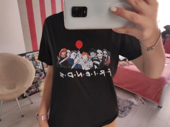 Футболка женская хлопковая в стиле Хэллоуин с принтом ужасные друзья