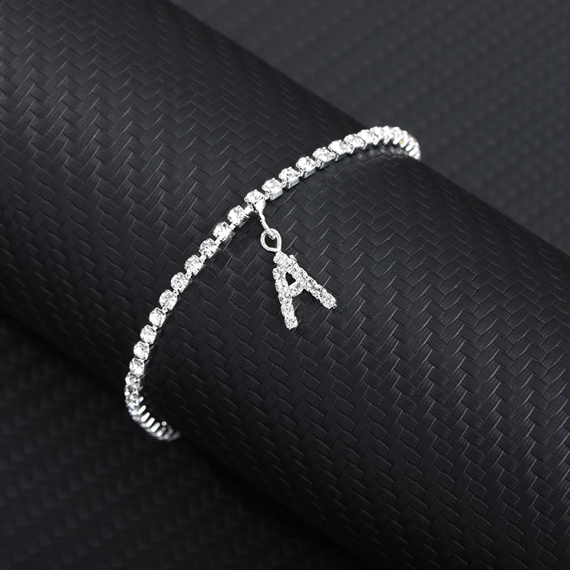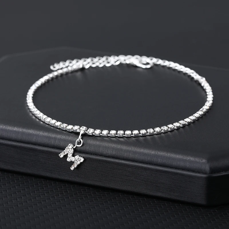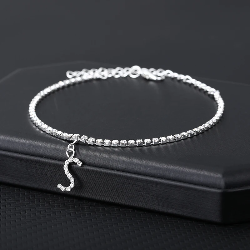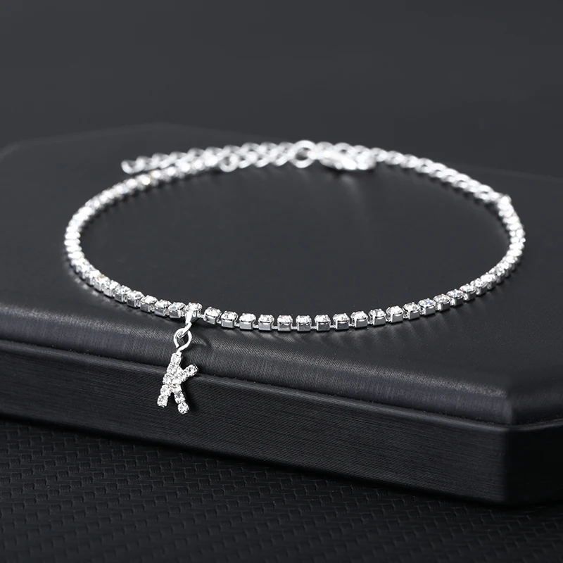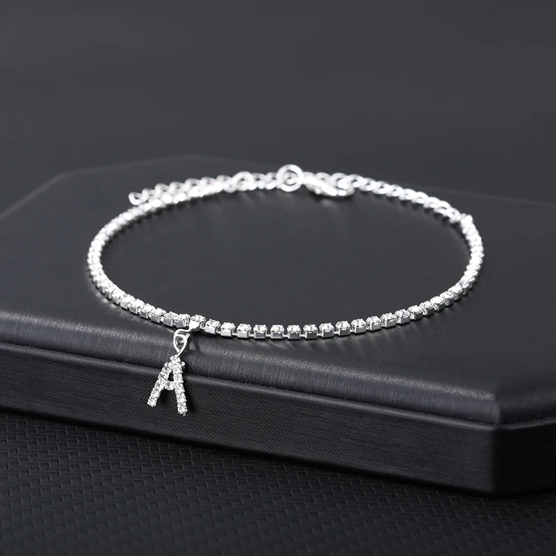 Браслет на лодыжку для женщин, анклеты с кристаллами циркона и буквами инициала, Пляжная бижутерия