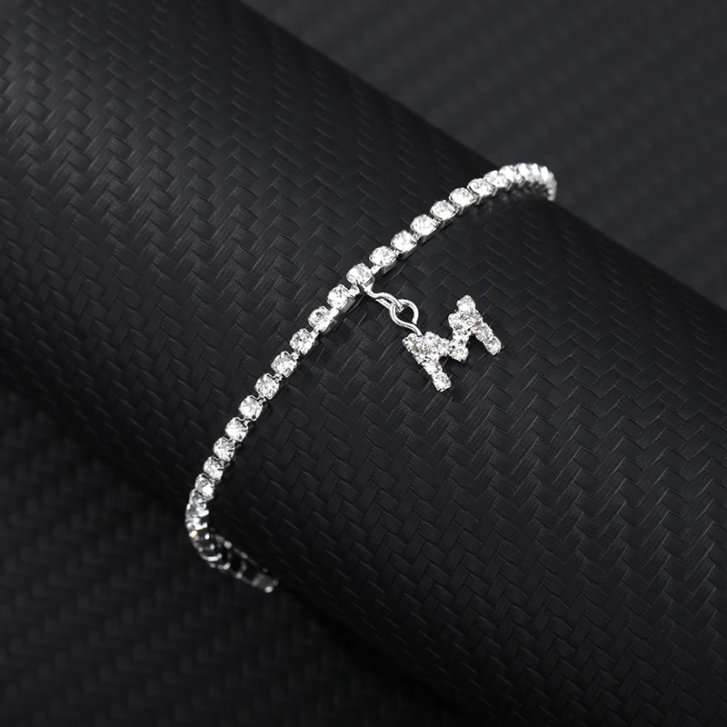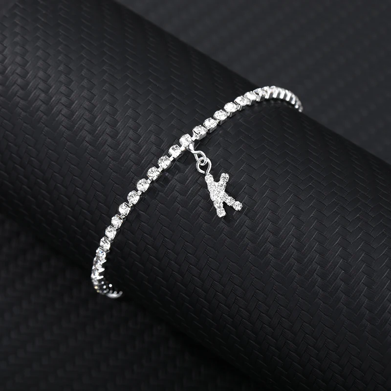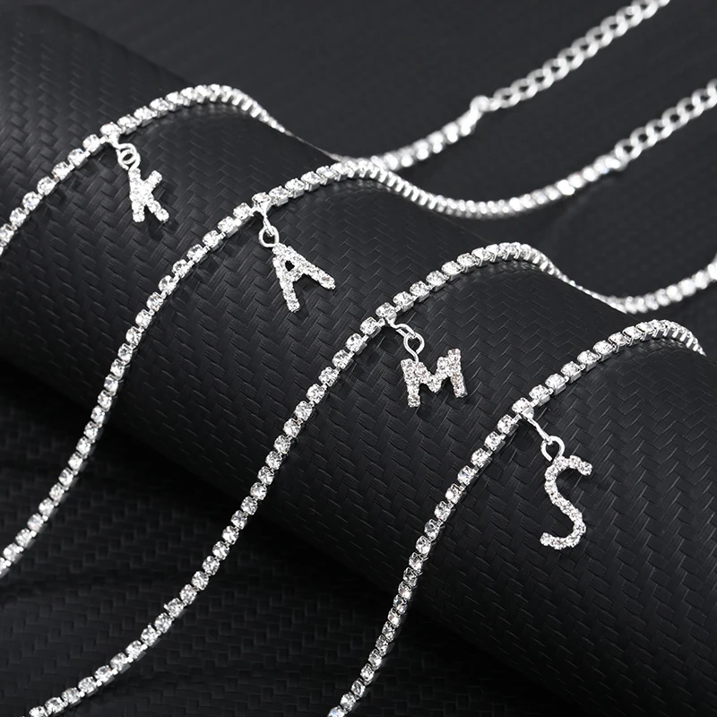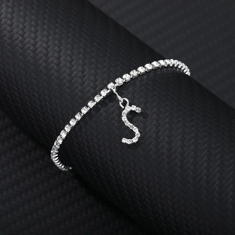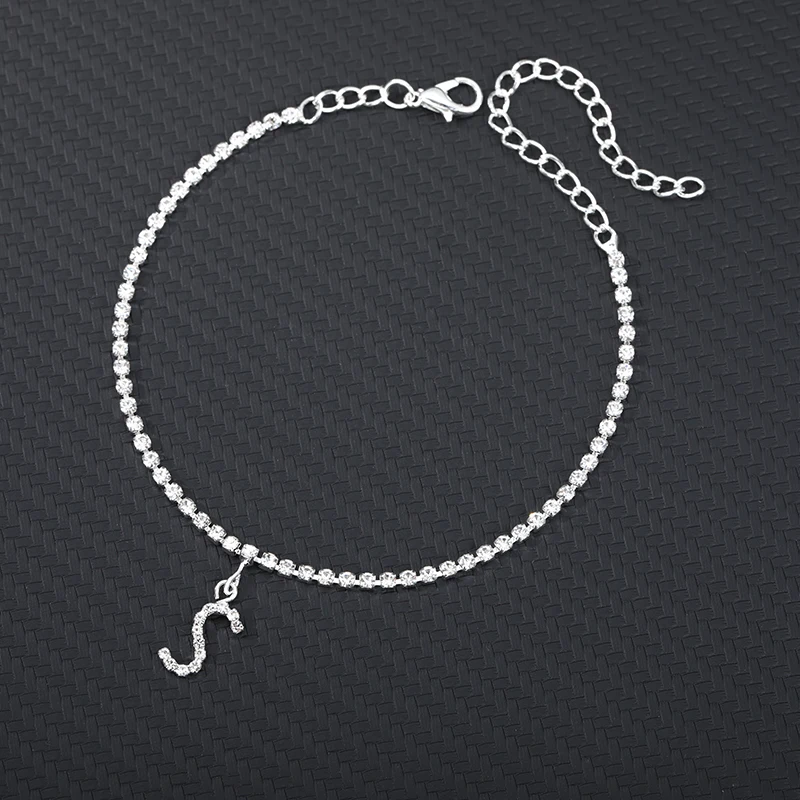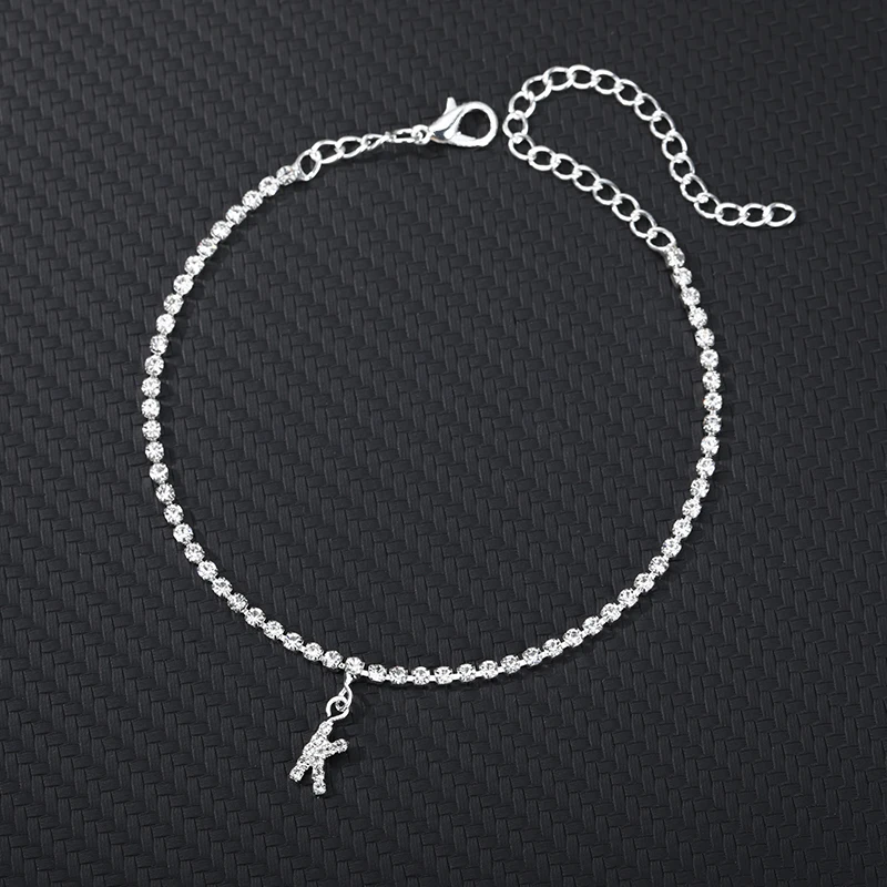 Браслет на лодыжку для женщин, анклеты с кристаллами циркона и буквами инициала, Пляжная бижутерия