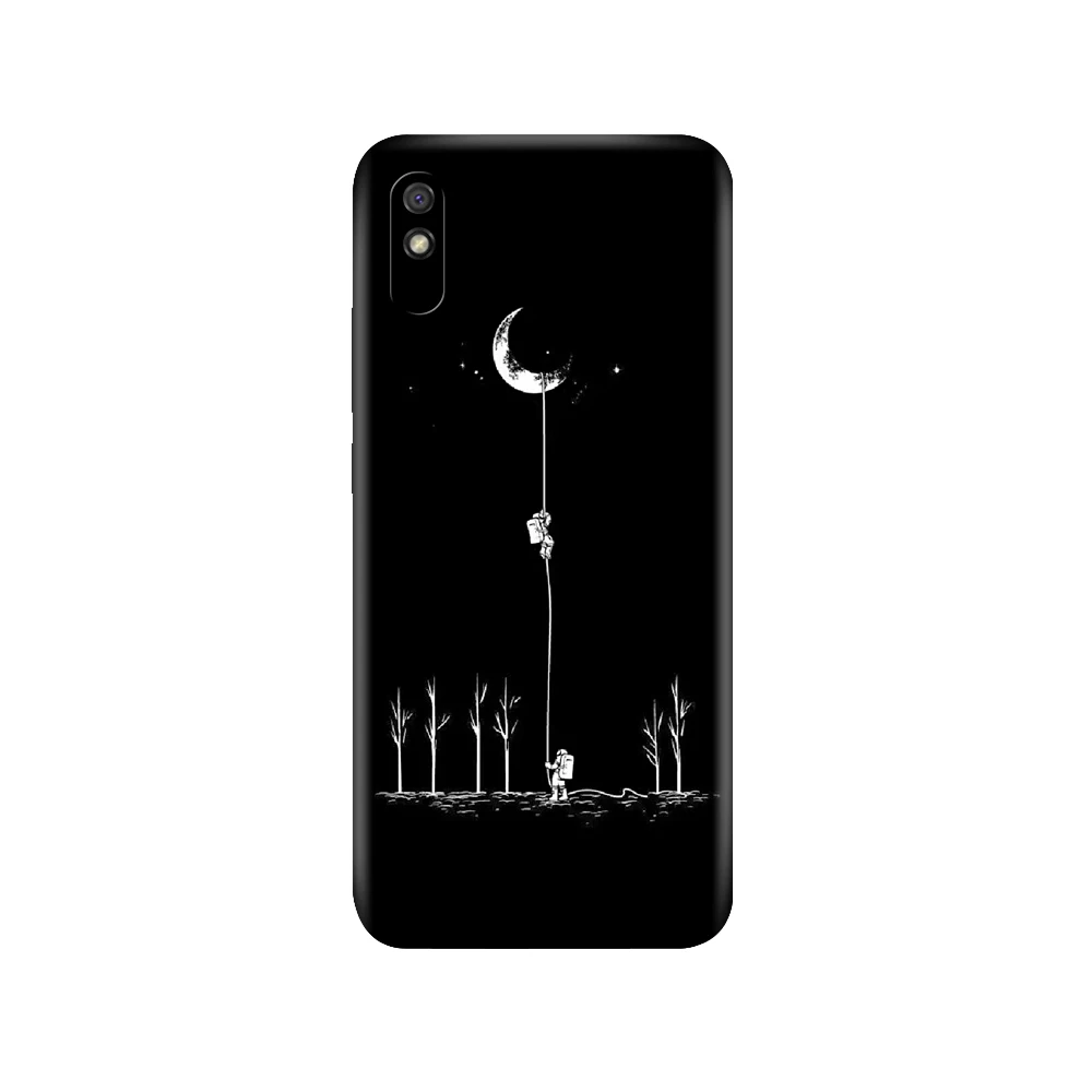 Черный чехол из ТПУ для Xiaomi Redmi 7A, 8, 8A, 9, 9A, 9C, чехол для Redmi Note 8T, 8 Pro, T, Note 9, 9S, 9 Pro, чехол с изображением космоса, Луны, милых кошек, черный