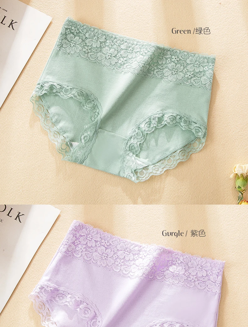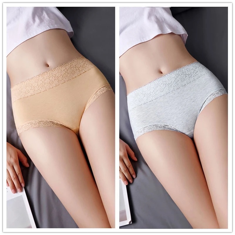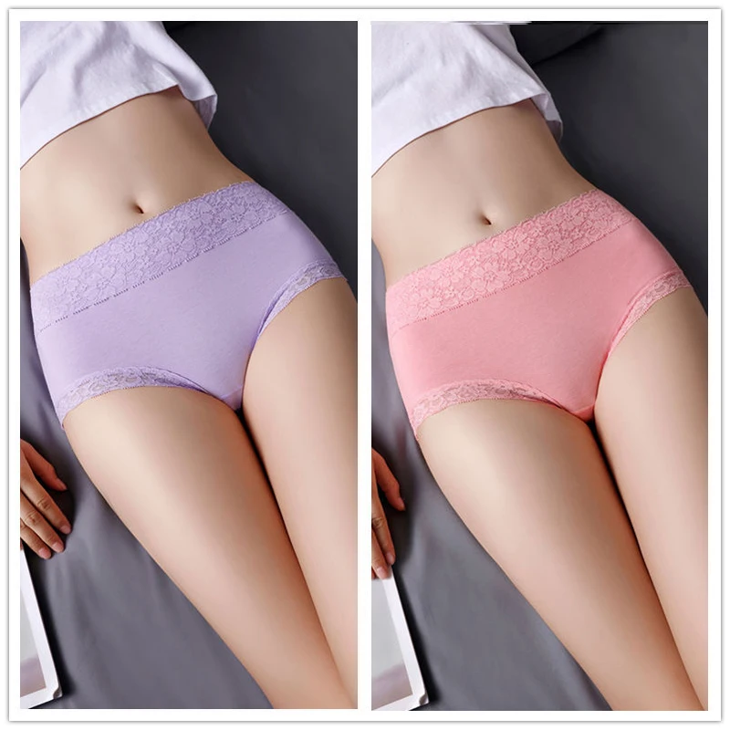 2 шт.компл., сексуальные кружевные женские трусики с высокой талией, хлопковые дышащие трусы для девочек, бесшовное дамское нижнее белье, однотонное женское нижнее белье