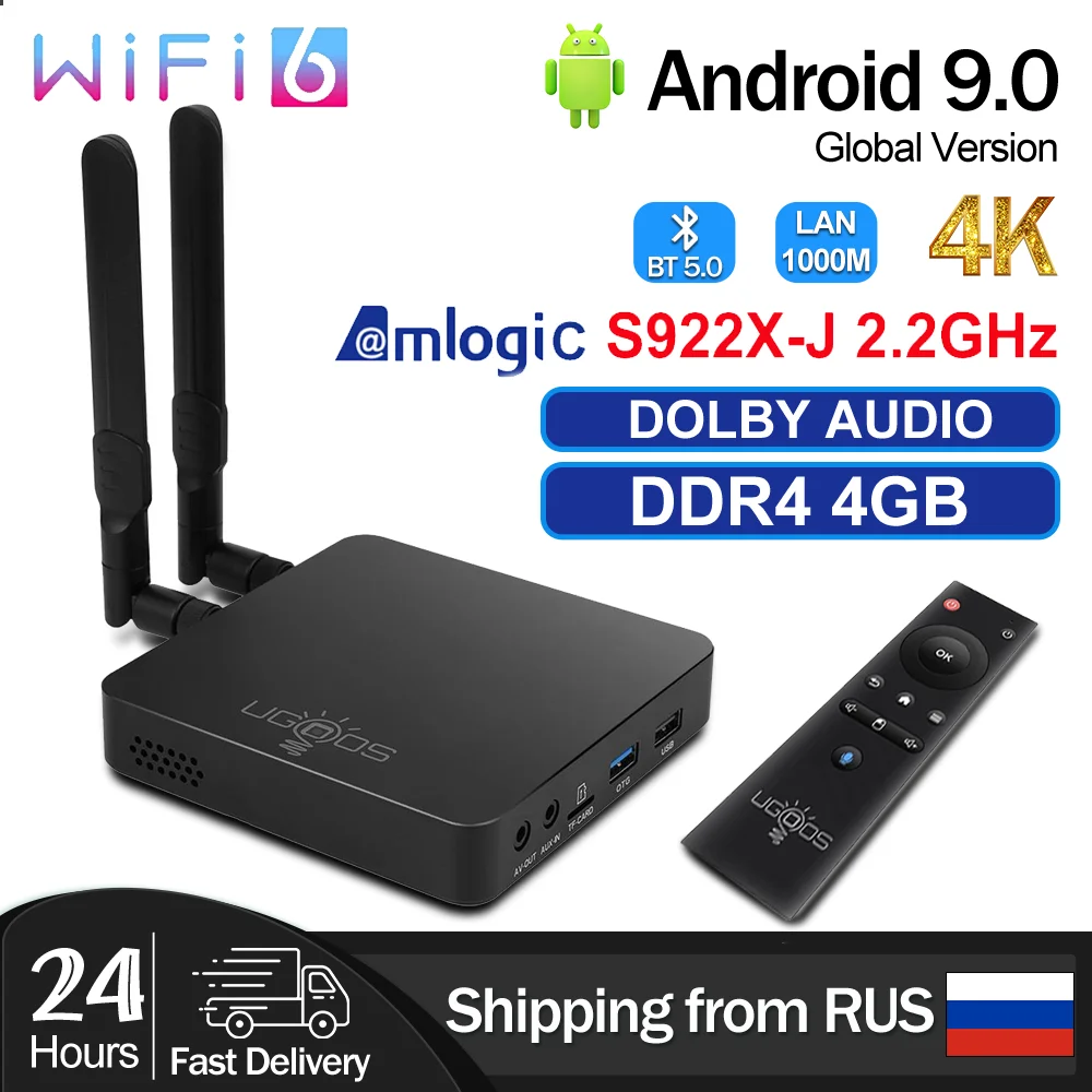 Приставка Смарт-ТВ UGOOS, Android 9,0, AM6B Plus, Amlogic S922X-J 2,2 ГГц, 4 Гб DDR4, 32 ГБ, Wi-Fi, 6 дюймов, 1000 м, BT5.0, смарт-медиаплеер, ТВ-приставка