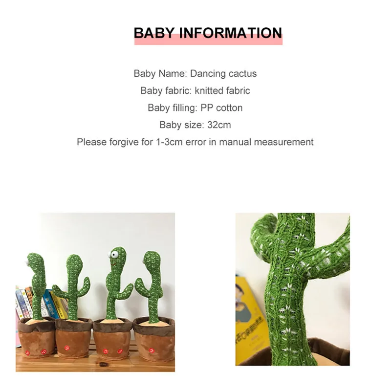 Танцующий кактус, Электронная плюшевая игрушка, мягкая плюшевая кук...