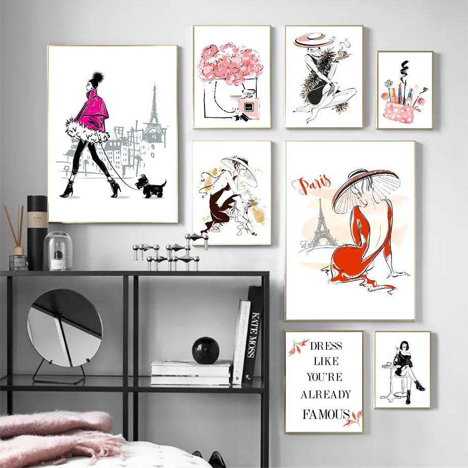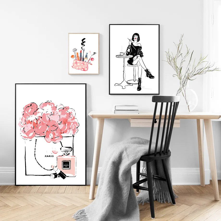Модный холщовый постер для девочек, абстрактный женский макияж, сумочка, парфюмерная живопись, Скандинавская городская красота, настенные картины для интерьера комнаты