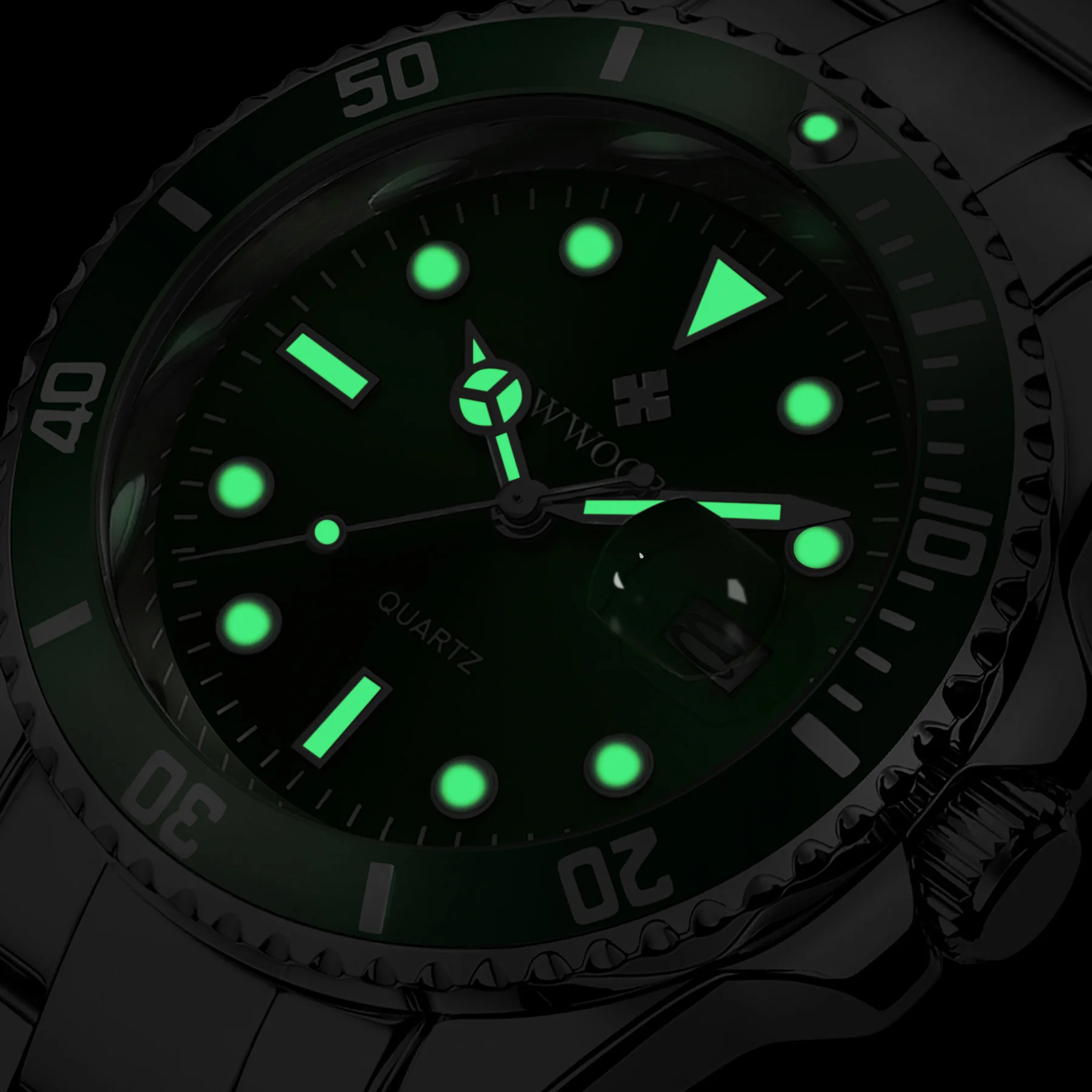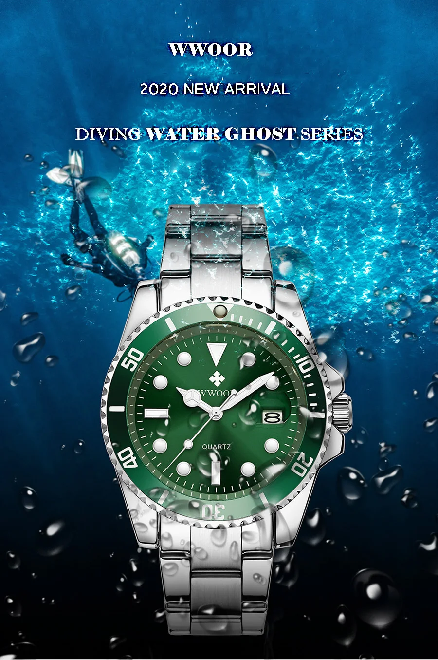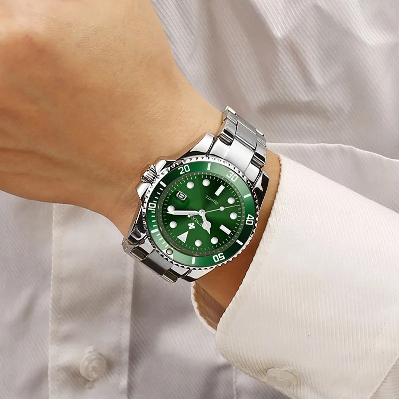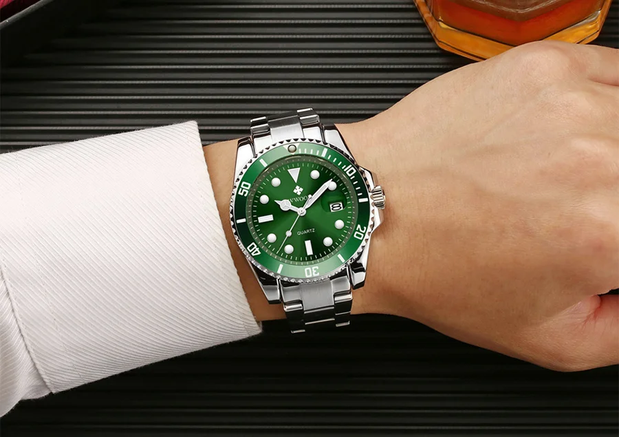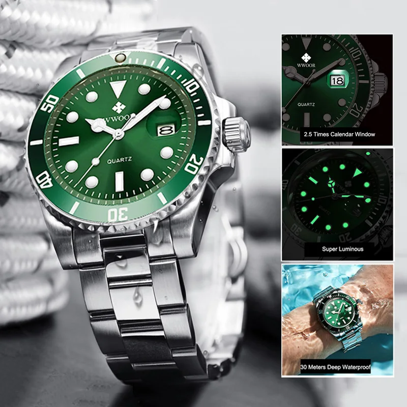Reloj Hombre 2021 Для мужчин часы WWOOR; Роскошная женская обувь, расшитая зелеными кварцевые часы погружения с автодатой, Modernos Экшн-камера для спортивного дайвинга, Водонепроницаемый наручные часы
