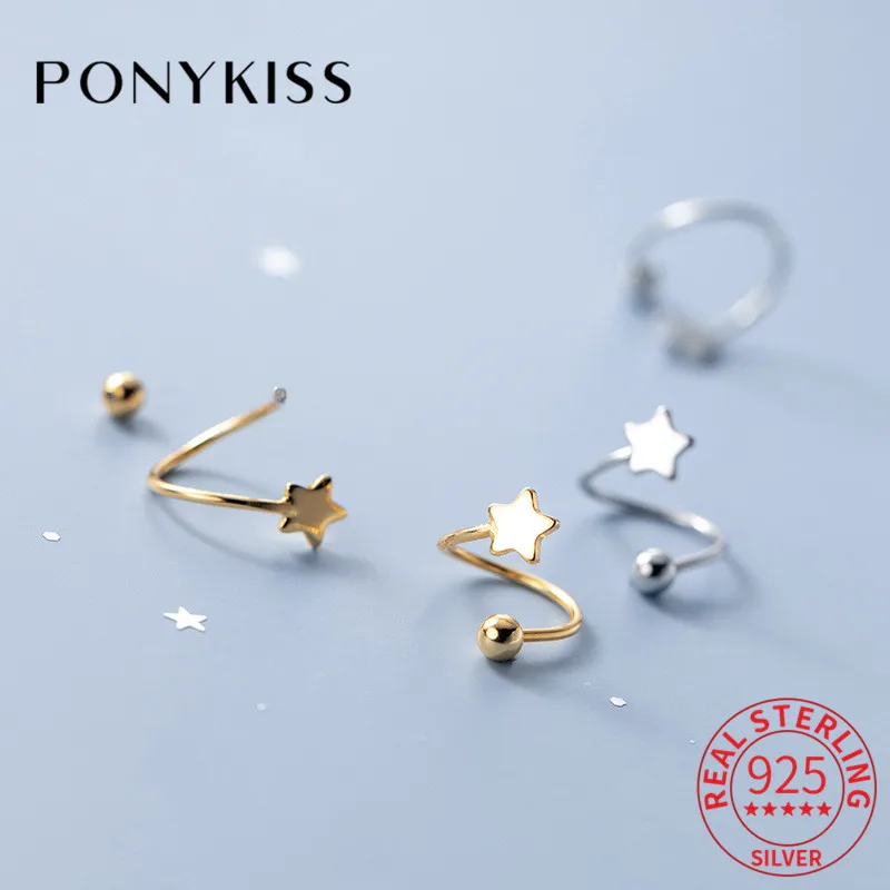 Стильные серьги PONYKISS 100% 925 пробы серебряные милые волнистые серьги для женщин Нежный аксессуар для вечерние шикарный подарок