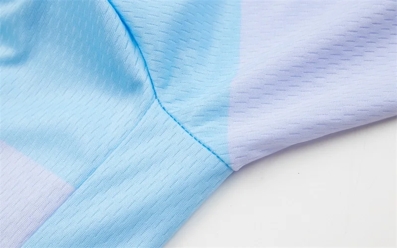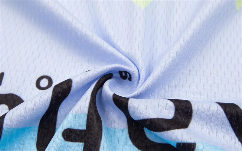 Ткань одежды изготовлена из полиэфирной сетки, которая хорошо впитывает пот и пропускает воздух, и в то же время обладает высокой эластичностью и эластичностью, что делает ношение более комфортным и близким к телу. Ткань имеет охлаждающий эффект и функцию дезодоранта.