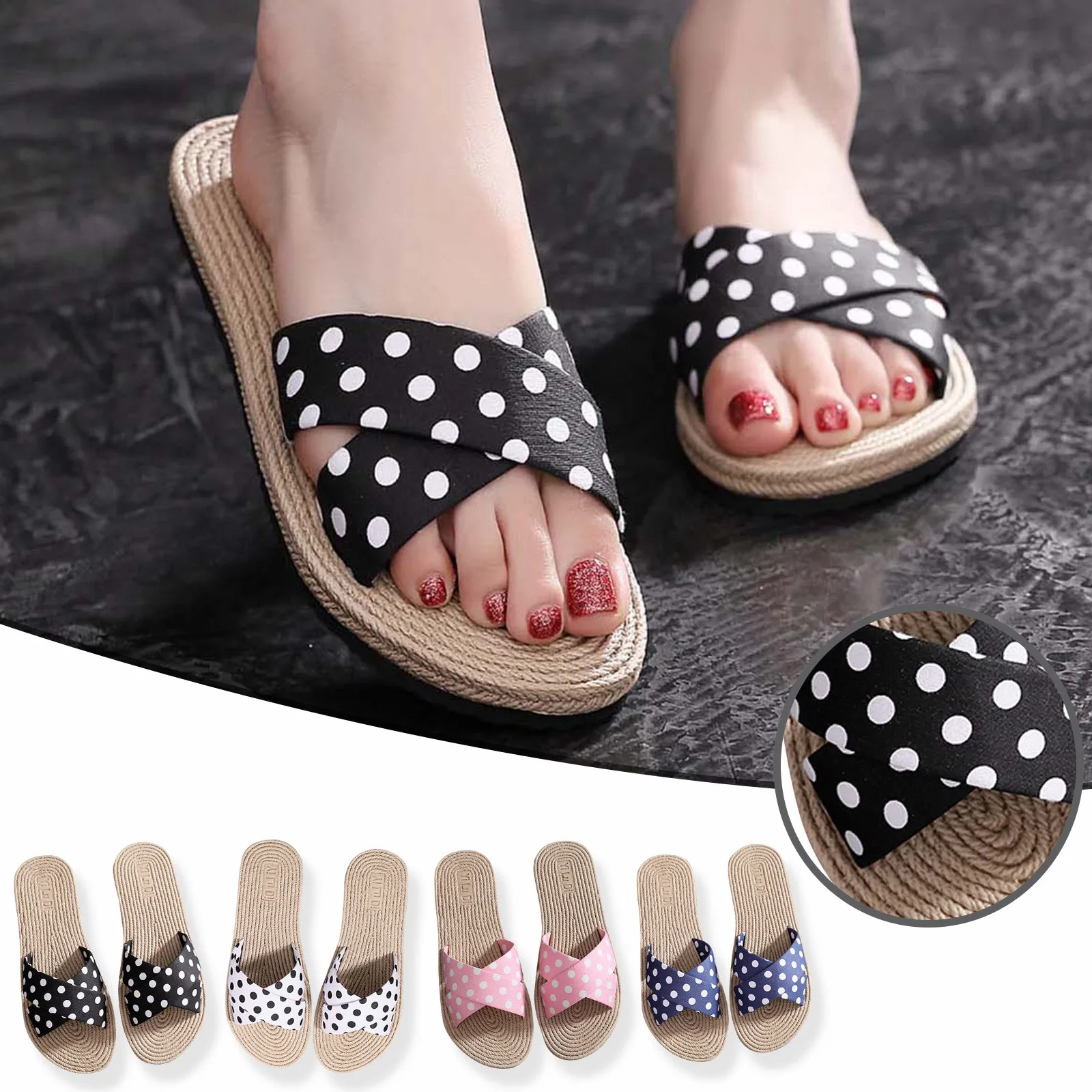 Летние женские шлепанцы в горошек; Пляжная обувь для отдыха
