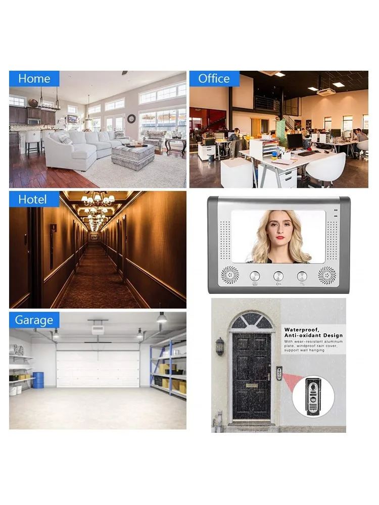 Особенности: панель из алюминиевого сплава для внутреннего блока, модная и роскошная. Небольшой дождь и окисление-доказательство для прочного алюминиевого сплава наружного блока. 7 "цветной TFT LCD без излучения, низкое энергопотребление и высокая четкость. ИК-камера с ночным видением. Функция управления электрическим замком. Handfree Интерком. Бесшумная функция внутренней связи. Наблюдение за пределами двери. 16 видов дверных колокольчиков. Регулировка громкости, яркости и контрастности.
