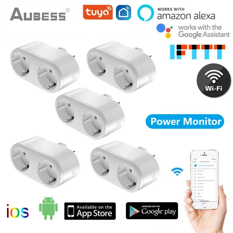 Умная розетка 2 в 1 Tuya, беспроводной адаптер питания с монитором и функцией Wi-Fi, работает с приложением Alexa Google Home Smart Life