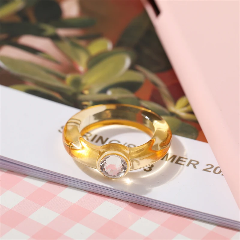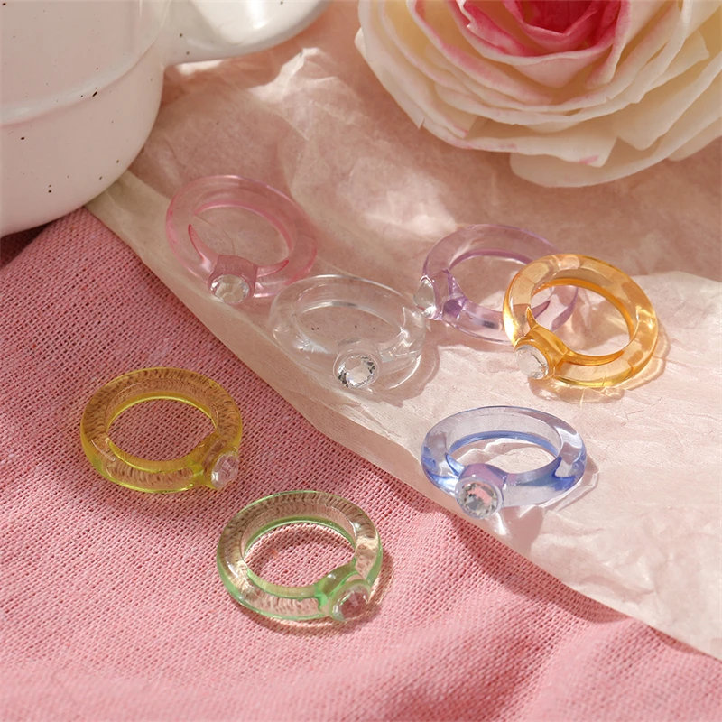 Корейские прозрачные разноцветные кольца из акриловой смолы для женщин летние Геометрические Квадратные Ювелирное кольцо со стразами подарки для путешествий