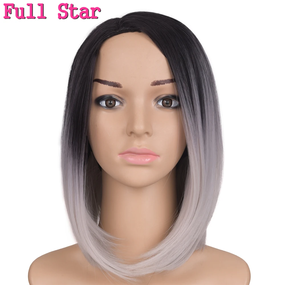 Полностью Звездные синтетические парики для женщин, черный, Омбре, серый, бордовый, светлый, серебристый, коричневый, афроамериканский, Yaki, стригт Боб, парик 160 г