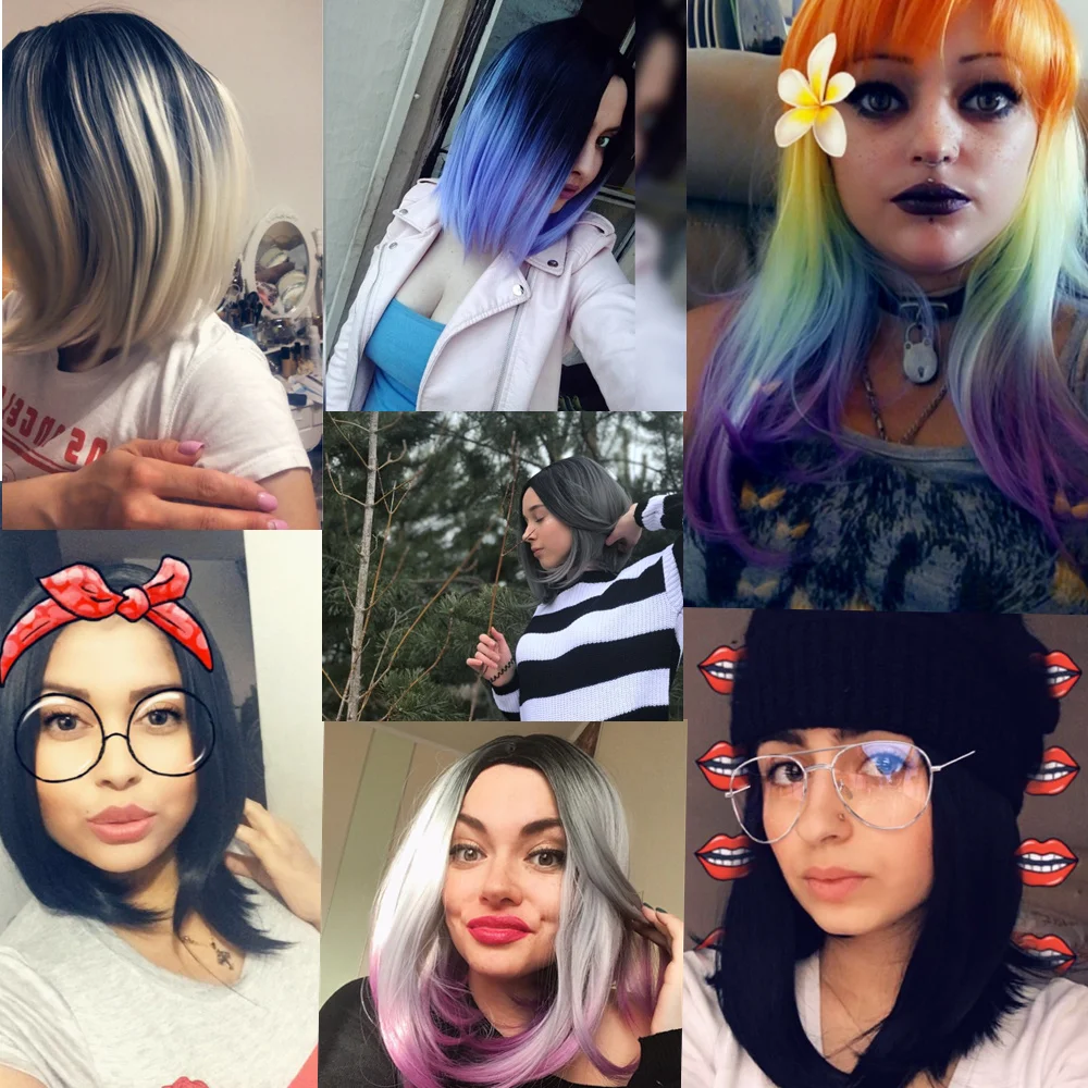 Полноразмерные короткие радужные парики с эффектом омбре для чернок...