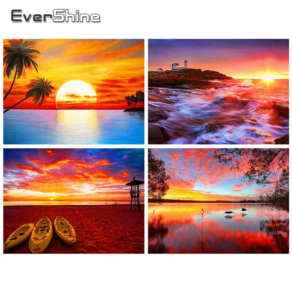 EverShine 5D DIY алмазная живопись закат вышивка крестиком Наборы Алмазная вышивка море пейзаж Стразы арт Наборы домашний декор