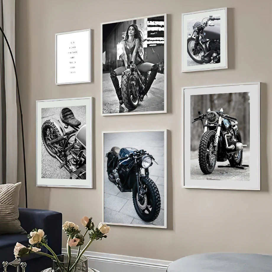 Настенная Картина на холсте гонка классическая модель мотоцикла девушка черные белые скандинавские постеры и принты настенные картины для гостиной
