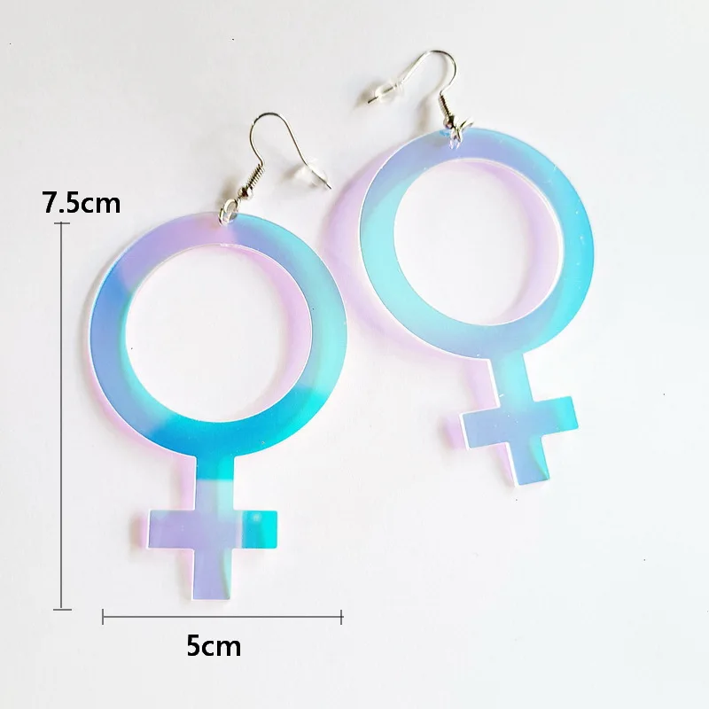 Лазерные серьги для мужчин и женщин с символами пола, акриловые серьги, меняющие цвет, ажурные длинные большие серьги с кисточками, простые уникальные модные украшения