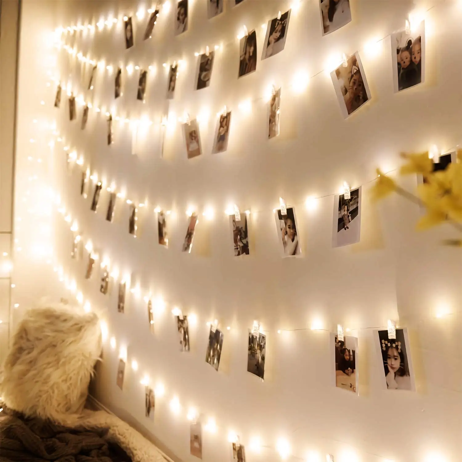 2 м USB светодиодный Сказочный светильник, Рождественское украшение, 5 м, на батарейках, фотозажим, домашняя гирлянда светильник, праздничный светильник, украшение