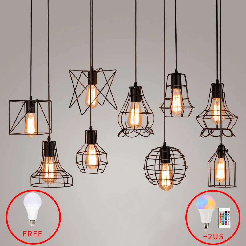 Винтажный светодиодный подвесной светильник в виде клетки, комнатное освещение, светильник ро светильник, лампы для гостиной, декор для кухни
