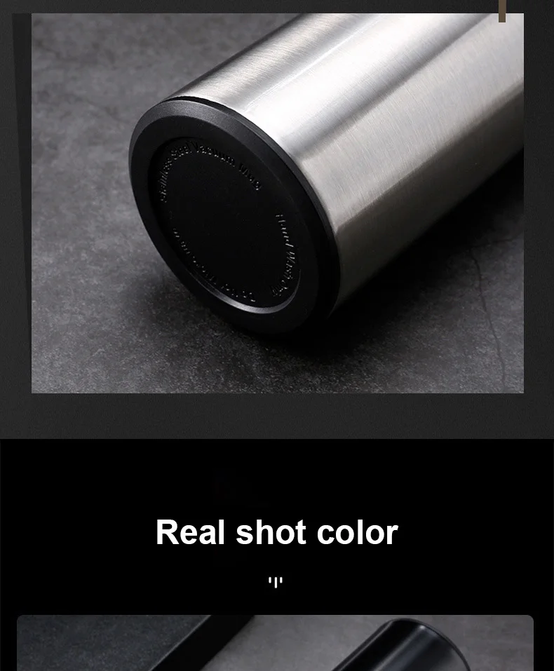 Название: умный термосЕмкость: 480 млРазмеры: 23*6,5 смВес: 280 гКалибр: 5 смПластиковые детали: PPПодкладка: нержавеющая стальВремя сохранения тепла: 24 ч