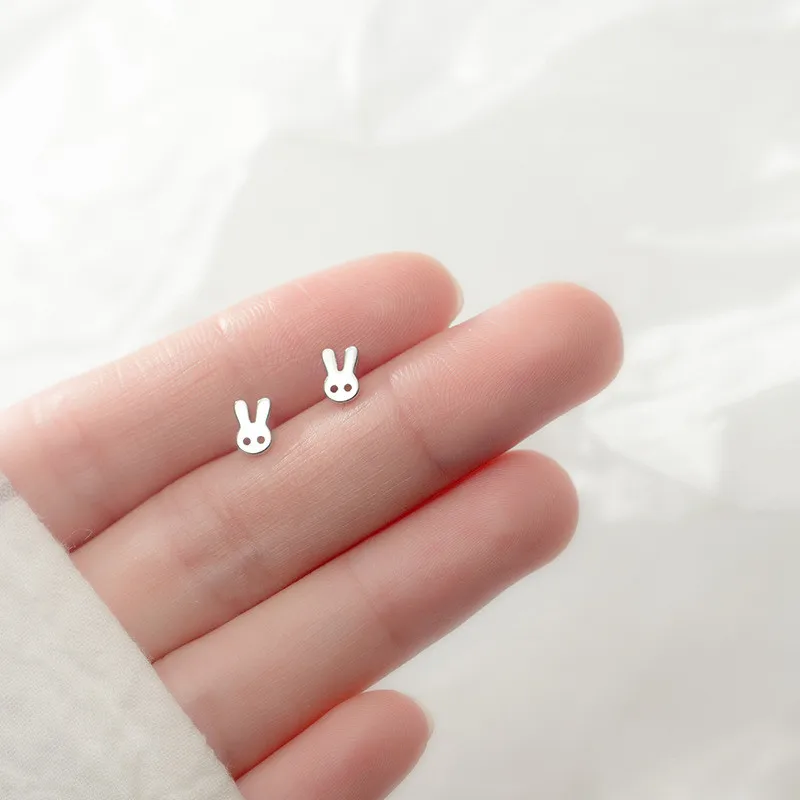 Серьги-гвоздики KAMIRA из стерлингового серебра 925 пробы в корейском минималистичном стиле с милым мультяшным кроликом Для женщин-подростков, милый подарок на день рождения, ювелирные изделия