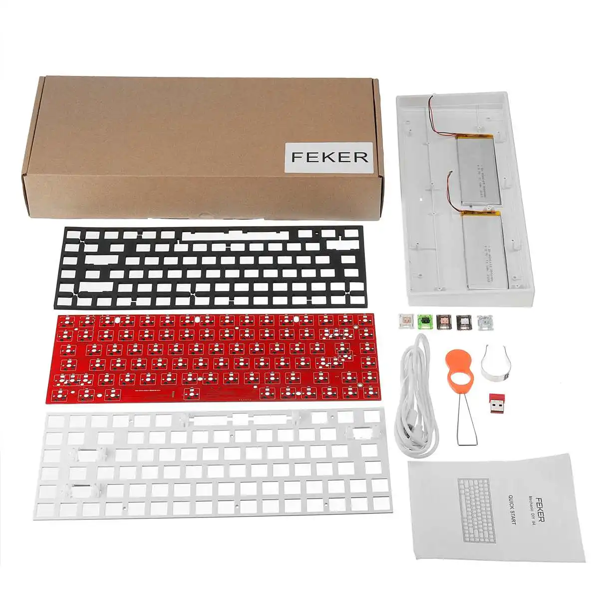 Спецификация:Бренд: FEKERМакет: 80% макетКоличество ключей: 84 ключаЧехол: матовый ABS чехолЦвет: черный/белыйНемой хлопок: ДаПереключатель: 3/5Pin регулируются, Hotswap терминалПодключение: тройной режим, USB проводной и bluetooth LE 5,0 и 2,4 Ghz(Windows 7/8/10, для Mac, Linux)Подсветка: 16,8 миллионов RGBRGB эффекты: 18 видовИсточник: светильник SMDКлюч от привидения: NKROАккумулятор: встроенный литий-ионный аккумулятор 6000 мАч (3000 мАч + 3000 мАч)Рабочий ток USB: 5 В постоянного тока, 500 мА максКабель: Съемный 1,8 м Тип-C USB Дата-кабельОсобенности:-Hotswap клавиатура DIY Kit. Пользовательский комплект оснащен горячими заменяемыми клеммами, с помощью которых вы можете установить переключатели непосредственно без пайки. Он совместим с Cherry MX переключатели, Kailh переключатели и гэтеронских коммутаторов и других 3 pin-код или 5 pin переключатели. Вы можете легко создать свою собственную механическую клавиатуру с помощью этого набора.-Немой хлопок. Высокая конфигурация механической клавиатуры. Устраняет звук полости/увеличивает толщину звука/уменьшает резонанс клавиатуры.-16,8 миллионов RGB подсветки. RGB является таким крутым элементом во время игры. Этот изготовленный на заказ комплект полностью знает ваши потребности и, таким образом, эта модель оснащена RGB SMD светильник. Доступно более 16,8 миллионов ламп. Это больше, чем клавиатура, но и забавная игрушка-Работа с программой драйвера для повторной сборки всех ключей и записи макросов.-Профессиональная 84 клавишная клавиатура. Это 80% макет печатной платы, широко совместим с большинством 84key чехол клавиатуры, вы можете изменить чехол, как вы хотите. Чипсет 32 бит MCU + 8 м флэш-памяти на плате, и 3 отдельных 256*256*256 RGB чип управления цветом.-Тройное подключение. bluetooth 5,0, Тип-C USB-C, 2,4 ГГц тройной режим соединения, дает возможность при использовании клавиатуры для настольного компьютера в беспроводной. Широко совместим с несколькими системами, для Mac, iOS, Windows, Linux и Android.Комбинации клавиш:Fn + Q: 2,4 ГГц (голубой индикатор)Fn + E:bluetooth No.1 (синий индикатор)Fn + R:bluetooth No.2 (синий индикатор)Fn + T:bluetooth No.2 (синий индикатор)Fn + Y: проводнойFn + esc: восстановление заводских настроекFn + W: переключатель направленияFn + L WIN:win Блокировка ключейFn + ↑/↓: Увеличение/уменьшение яркостиFn +[: уменьшение скорости подсветкиFn +]: увеличение скорости подсветкиFn +: переключатель режима освещенияFn + F1: плеерFn + F2: громкость-Fn + F3: Громкость +Fn + F4: бесшумныйFn + F5: стопFn + F6: Предыдущий трекFn + F7: воспроизведение/паузаFn + F8: следующий трекFn + F9: почтаFn + F10: домашняя страницаFn + F11: калькуляторFn + F12: ПоискПосылка включает в себя:1 * Клавиатура настраиваемый комплект (чехол + Pcb + немой хлопок + стабилизатор + стальная панель позиционирования + аккумулятор)1 * кабель Type-cПриемник 1*2,4G5 * переключатели FEKER1 * Съемник Keycap1 * Съемник переключателей1 * Руководство пользователя