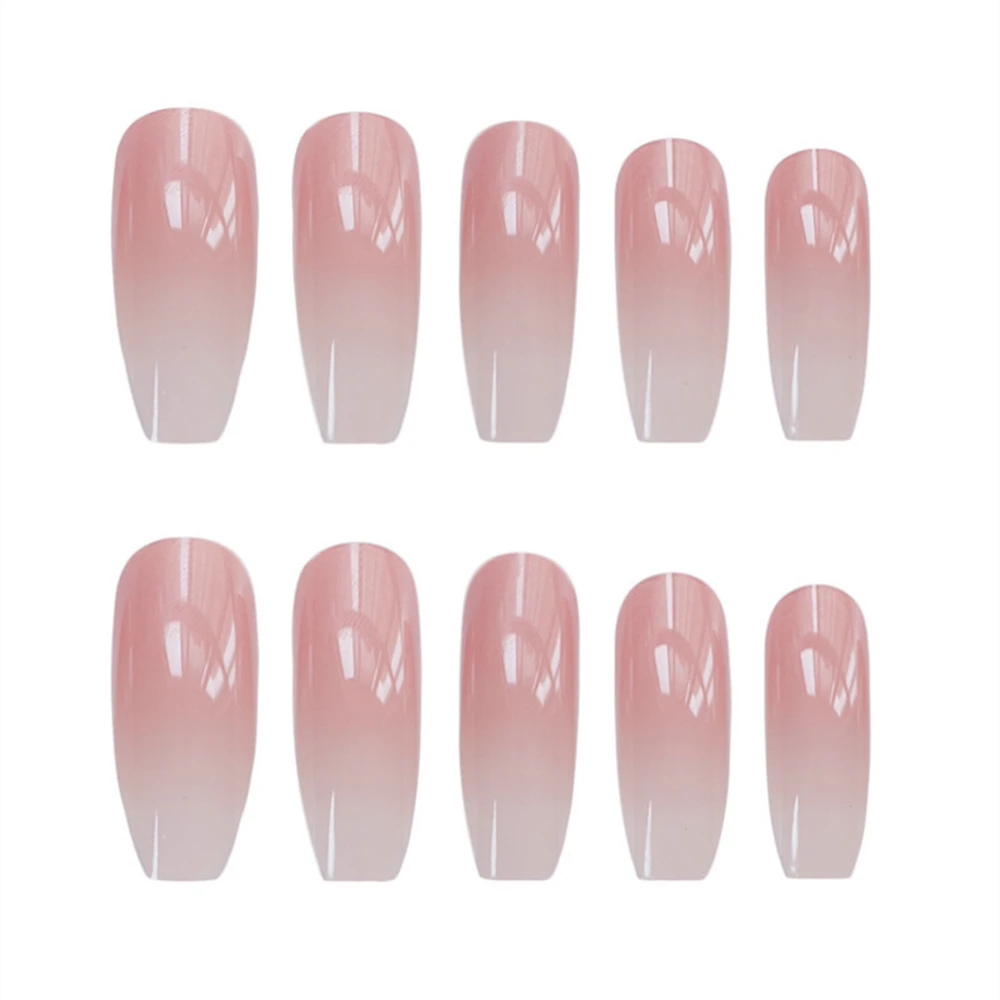 24 шт. поддельные ногтей с дизайном Съемная розовый градиент длинные гроб накладные ногти для ног носки балерина, накладные ногти, полного покрытия, накладные ногти