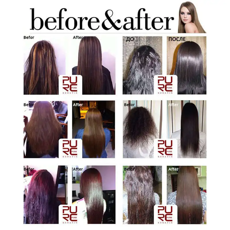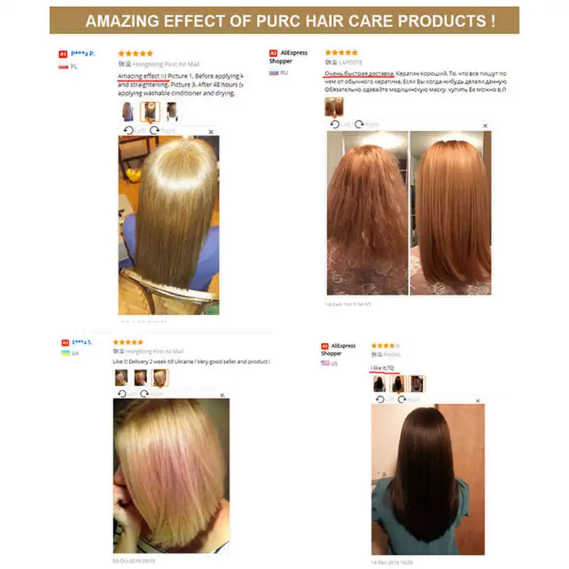 Выпрямление волос с бразильским кератином Purc, 8% формалина, 300 мл, устраняет вьющиеся волосы и делает их блестящими и здоровыми