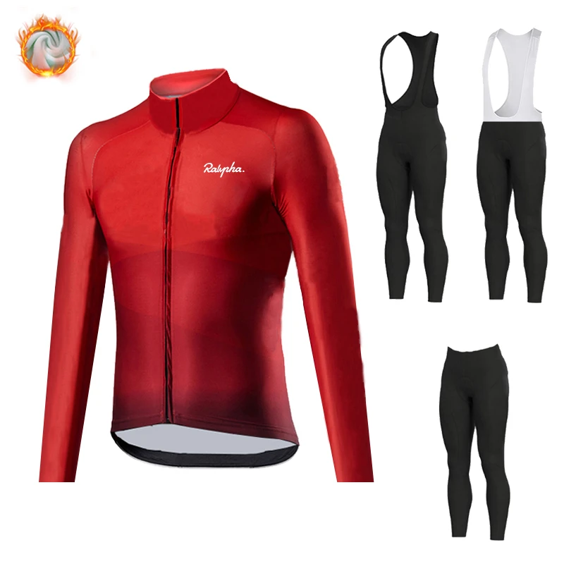Комплект велосипедной одежды Ralvpha, Красная Зимняя флисовая одежда для горных велосипедов с длинным рукавом, 2021