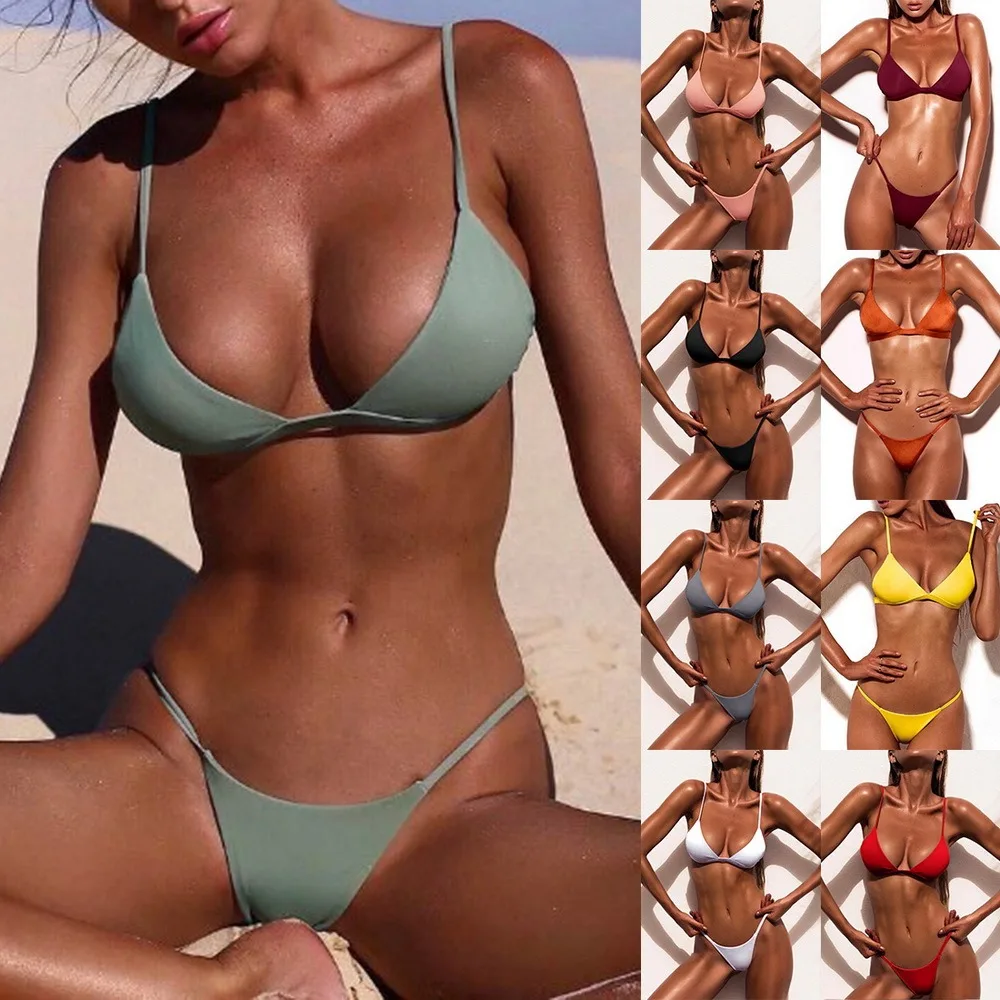 Новинка 2021, пляжная одежда, сексуальное бикини с низкой талией, купальник для женщин, купальник пуш-ап, женский купальный костюм, бразильский комплект, сексуальные стринги, бикини