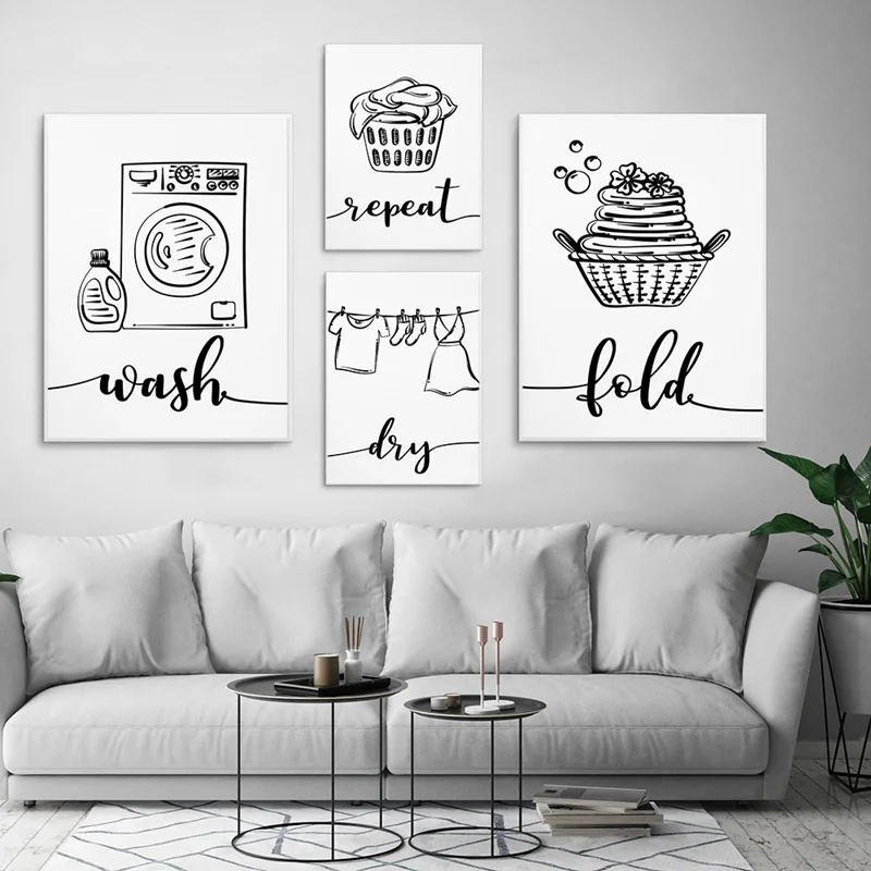Стирать сухой складывать повторное белье Черно-белые настенные худо...