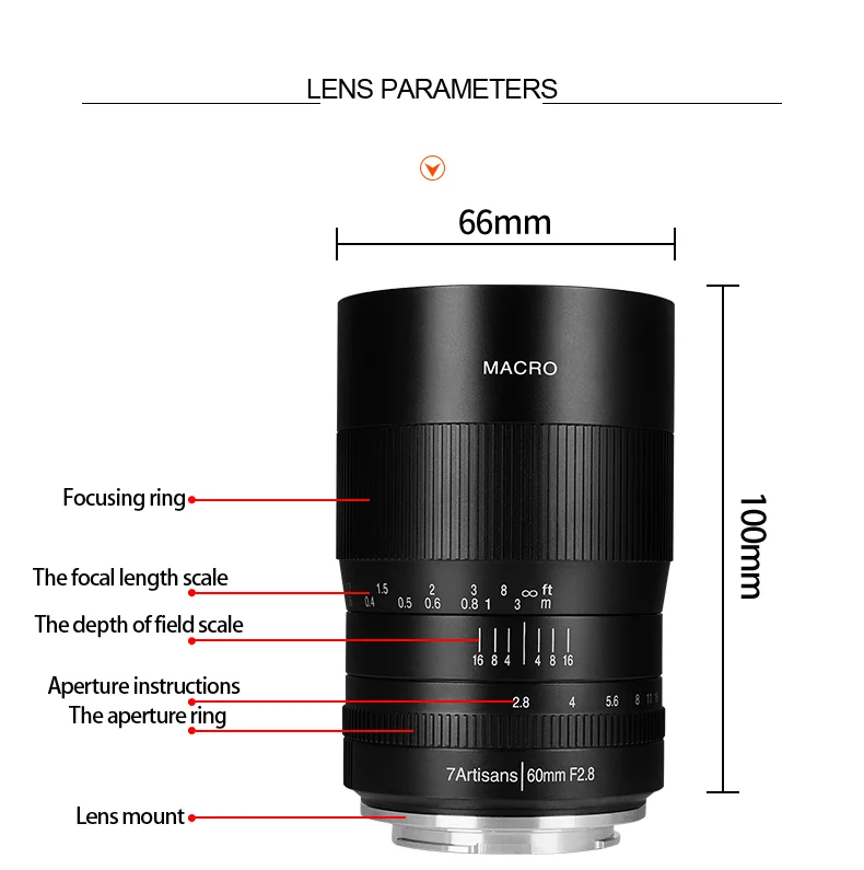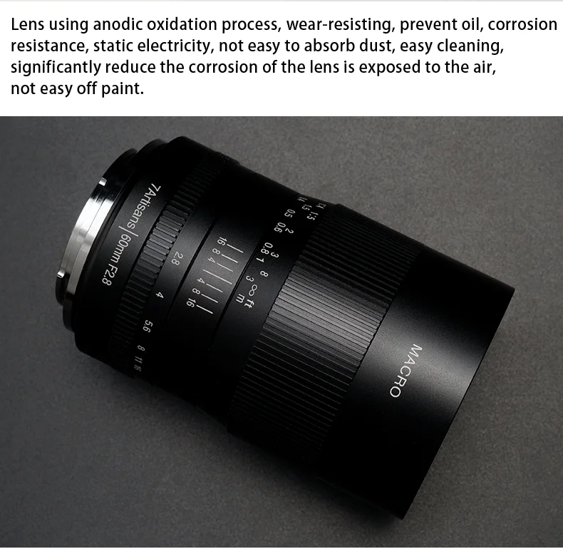 ◆ Закругленная диафрагма с 10 лезвиями. Диапазон диафрагмы: f/2,8-f/16. Диапазон фокусировки: 2,4 "до бесконечности.◆ Ручная фокусировка, Ручная настройка апертуры, может работать с УФ-фильтром 39 мм. (Примечание: УФ-фильтр не входит в комплект)◆ Содержит 8 элементов в 7 группах. Плавающая система на переднем стекле может гарантировать превосходное качество изображения в условиях бесконечности и 1:1 макросъемки. Даже макро-сцены действительно маленькие, вы также можете использовать Удлинительный аксессуар, чтобы получить 2:1, чтобы 3:1 макро-изображение.◆ APS-C Тип рамы, он поддерживает работу с беззеркальными камерами и предлагает эквивалентное фокусное расстояние 90 мм, что очень идеально подходит для макросъемки, например, для съемки насекомых.◆ Сверхдлинное расстояние фокусировки 26 см обеспечивает большую глубину поля. При съемке предметов, таких как насекомые, вы можете снять переднюю линзу, чтобы избежать помех. (* Примечание: 26 см супер-длинное расстояние фокусировки, это расстояние от передней части камеры до объекта.)◆ Съемная передняя трубка. Для предотвращения попадания пыли в объектив. Более того, его можно растянуть в воду. Но обратите внимание, что объектив не поддерживает водонепроницаемость. (Когда вы хотите снять переднюю крышку объектива, поверните ее против часовой стрелки)◆Полностью металлический корпус, хромированная конструкция крепления, которая обеспечивает улучшенную защиту от коррозии, точность и жесткость.