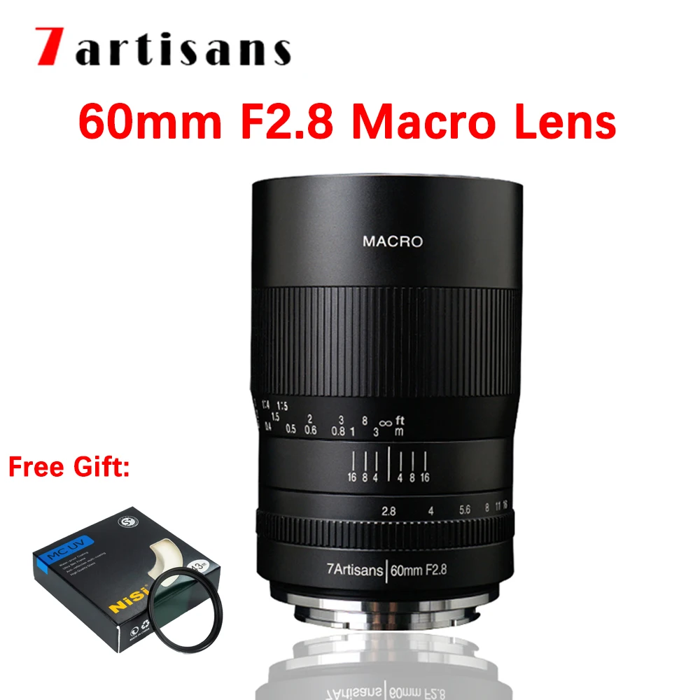 7artisans 60 мм F2.8 макро объектив 1:1 увеличение ручная фокусировка для цифровой однообъективной зеркальной камеры Canon Eos-MRFSony E NEXFujiM43Nikon Z крепление Камера