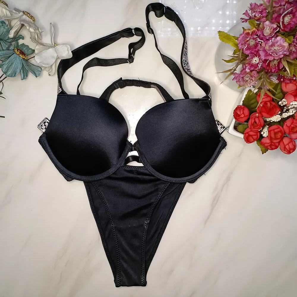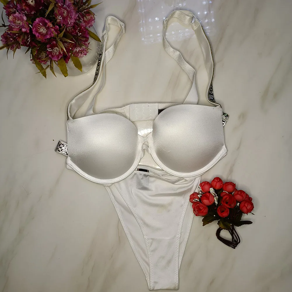 Роскошные Леопардовый принт стразы сексуальное женское бикини, набор, пуш-ап, бюстгальтер и трусики, 2 шт. трусы Для женщин нижнего белья пляжные вечерние основы